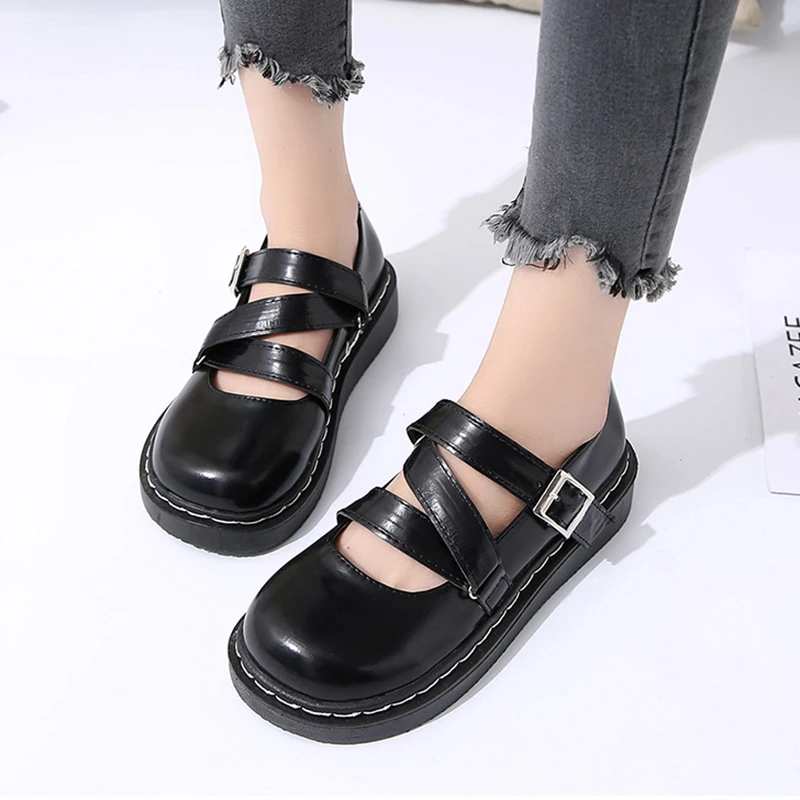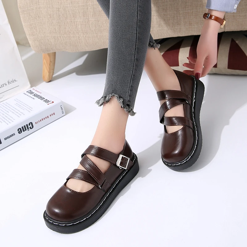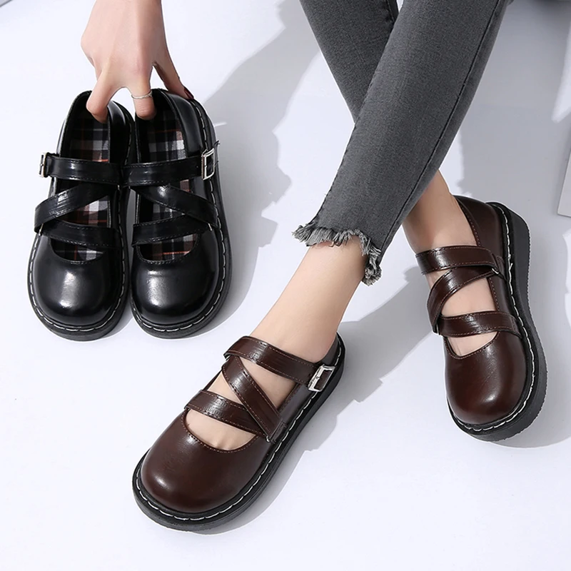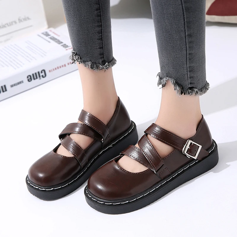 Туфли Лолиты; Сезон весна-осень; Женская повседневная обувь; Туфли Мэри Джейн на платформе с перекрестной шнуровкой и пряжкой; Женская обувь в стиле ретро с круглым носком; 8581N