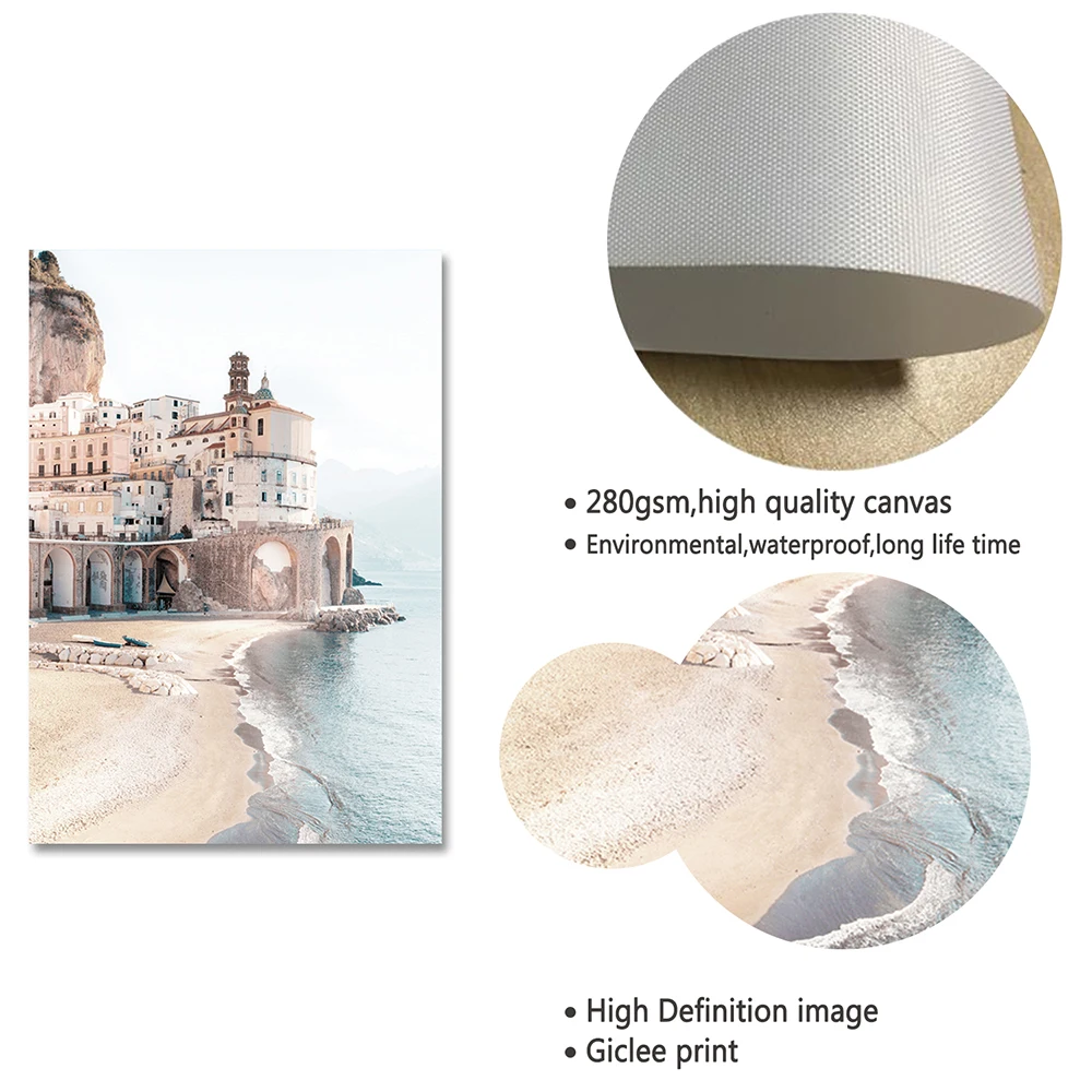 Итальянский Амальфи цветочный постер с природным пейзажем, морской пляж, цитата мечты, холст, художественная живопись, морской пейзаж, картина, Настенный декор