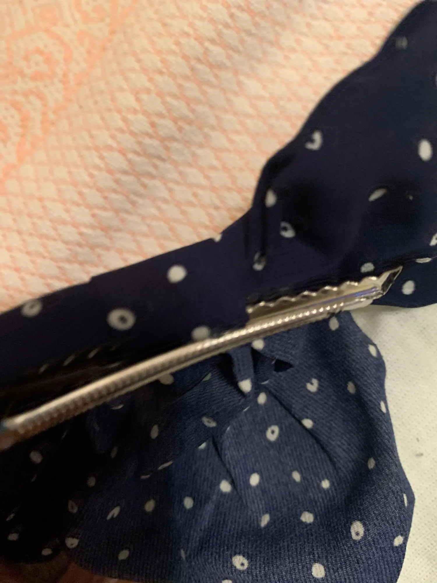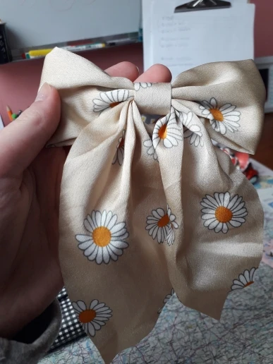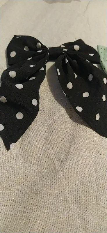 Очень долго отправлялась посылка, когда пришла очень расстроилась. Сами банты не ровные, одна сторона больше чем другая. Когда попыталась открыть заколку чтоб надеть увидела что очень много клея на самой железной заколке и она в итоге склеилась. Аккуратно отклеила, но все равно неприятно. Густые волосы особо не держит, ожидала что будет больше.