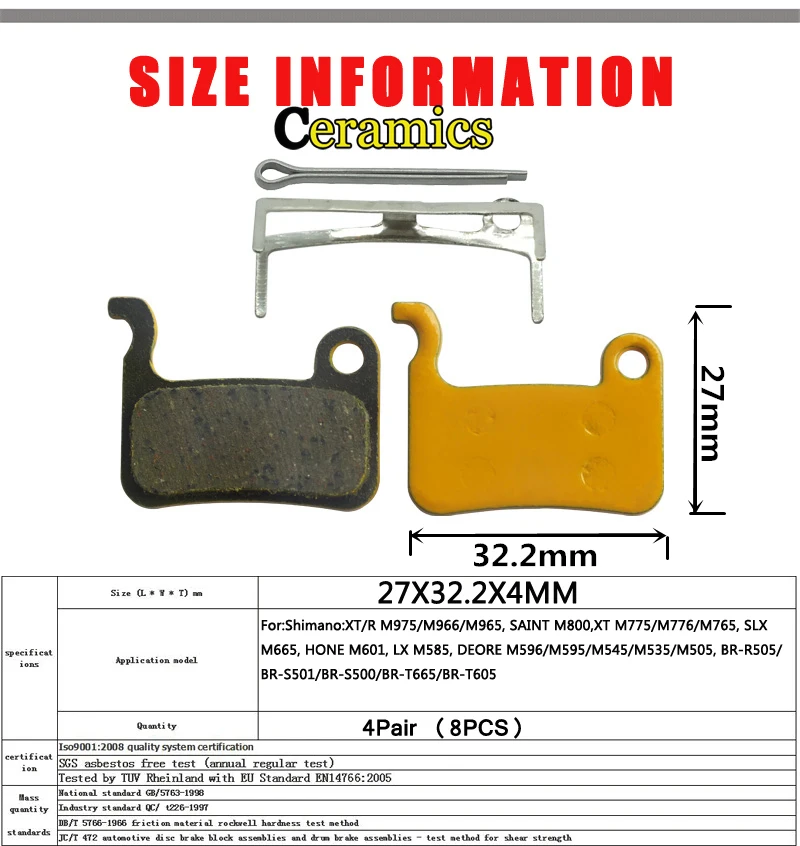 4 пары керамических дисковых тормозных колодок для велосипеда SHIMA...