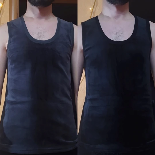Пошив ровный, аккуратный, ткань приятная и без дефектов. Приехали ни чем не пахнущие, хранились хорошо. Подошли майки и мне и мужу. Буду заказывать теперь ещё себе тоже. Теплые и мягкие. Общее впечатление о вещи: сделано добротно. Своих денег стоит. Мои параметры: 168 см 47 кг, Плечи 39 см, Грудь 84 см. Параметры мужа: 178 см 62 кг, Плечи 42 см, Грудь 94 см.
