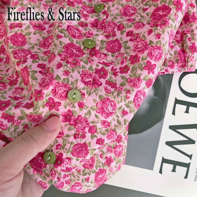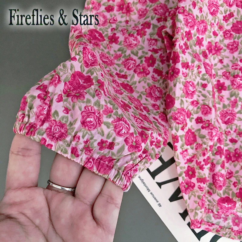 Название:Весенне-осенняя Блузка для девочек рубашка для малышей Топы для детей, модная детская одежда розовый цветочный топ с пышными рукавами и отложным воротником на возраст от 2 до 8 лет