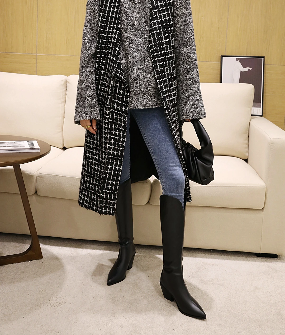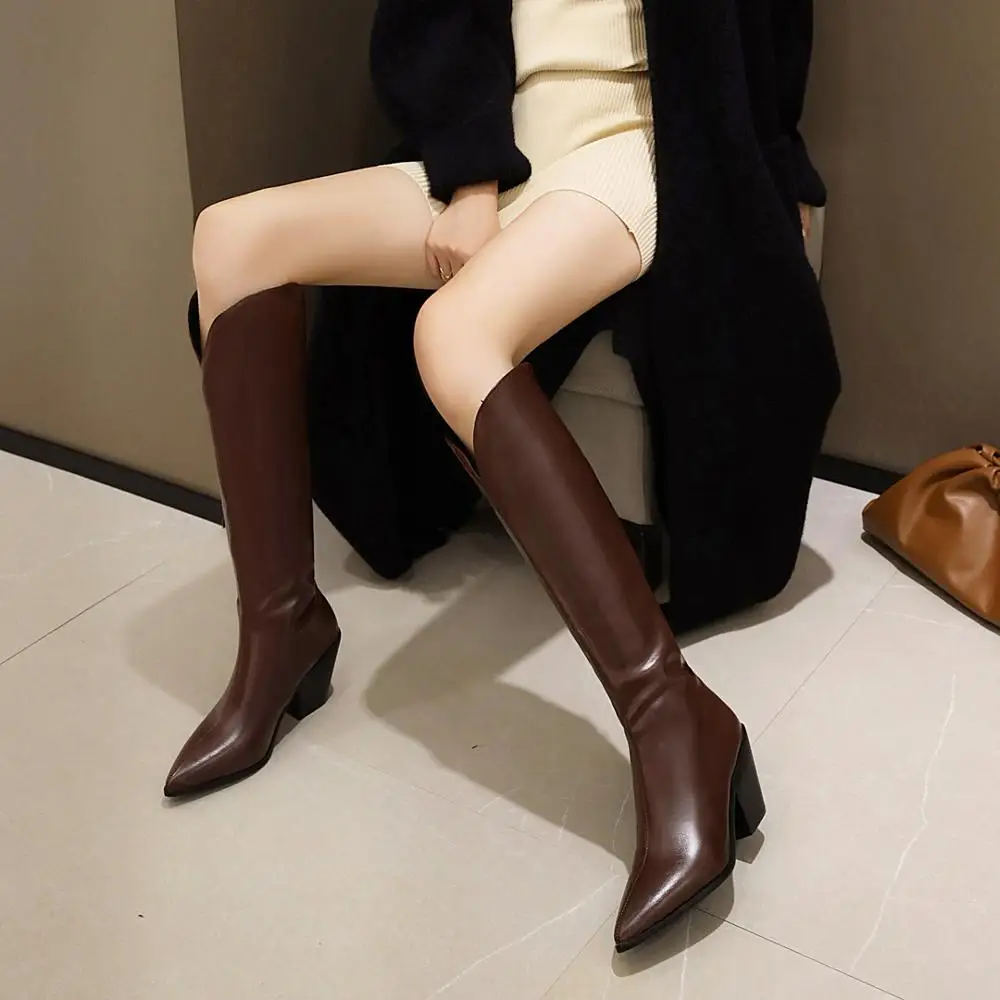 Женские ботинки челси до колена, из искусственной кожи, с острым носком, на квадратном каблуке, повседневные, для вечеринок, Осень-зима 2020