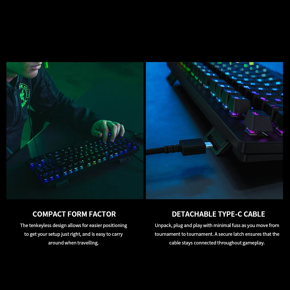 С 1,0 мм оптический привод, который регистрируется со скоростью светильник, ожидаем, что nothing but мгновенный ответ будет защищен со всех сторон нажатия клавиш, как вы реагирует и выполнить сцепления играет с клинической эффективности. Протестировано, чтобы иметь лидирующую в отрасли долговечность до 100 миллионов нажатий клавиш, линейные оптические переключатели Razer также хорошо оснащены, чтобы выдерживать суровые тренировки и Конкурентные игры.