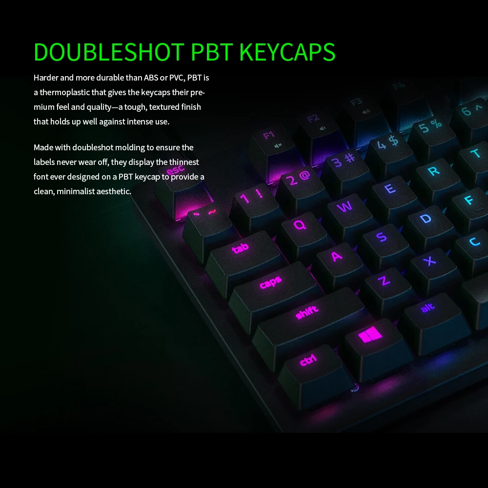 Более прочный и долговечный, чем АБС-пластик или ПВХ, ПБТ-это Термопластик, который придает колпачкам ощущение и качество премиум-качества-жесткая, текстурированная отделка, которая хорошо удерживает от интенсивного использования. И сделано с двойной горячей формовкой, чтобы гарантировать, что этикетки никогда не изнашиваются, они отображают тонкий шрифт, когда-либо Разработанный на keycap PBT, чтобы обеспечить чистую, минималистскую эстетику.