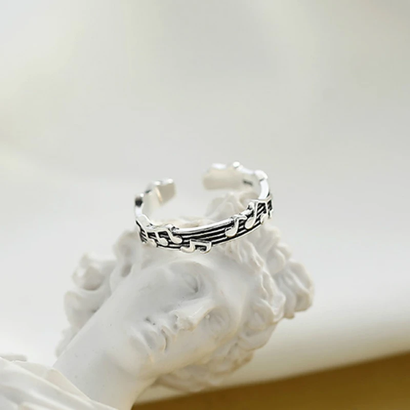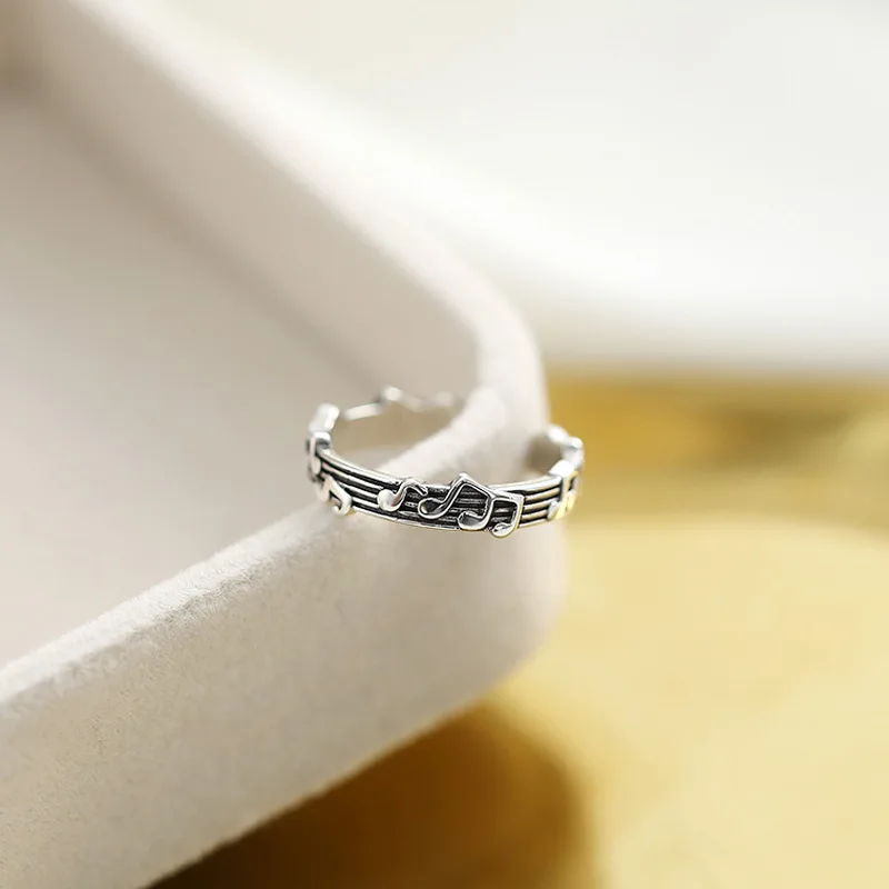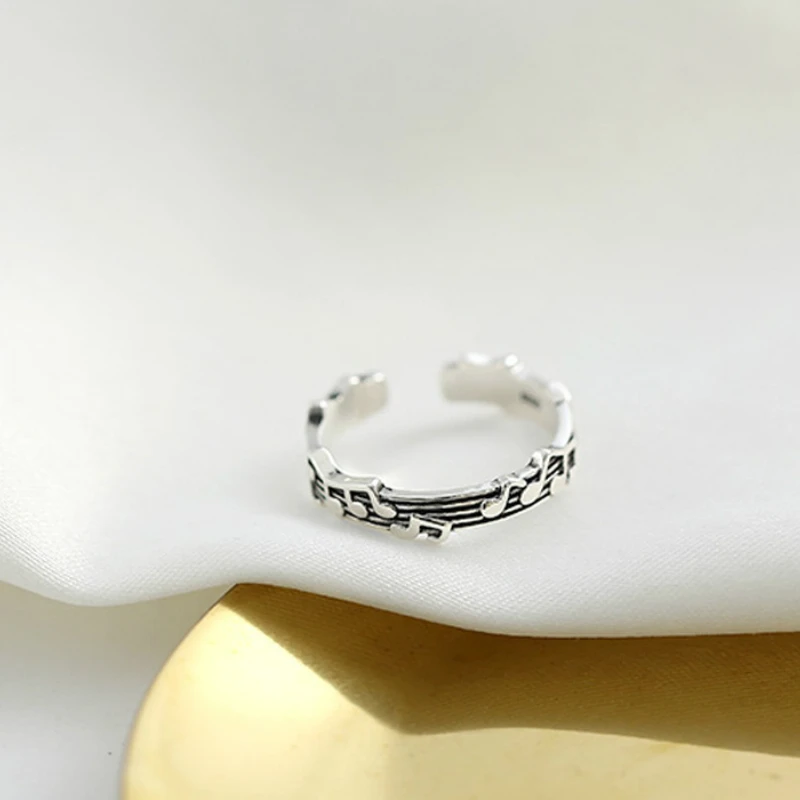 Серебряное кольцо в стиле ретро, тибетское музыкальное кольцо серебряного цвета, регулируемое музыкальное кольцо в ретро-стиле для женщин и девушек, подарок, Модная бижутерия