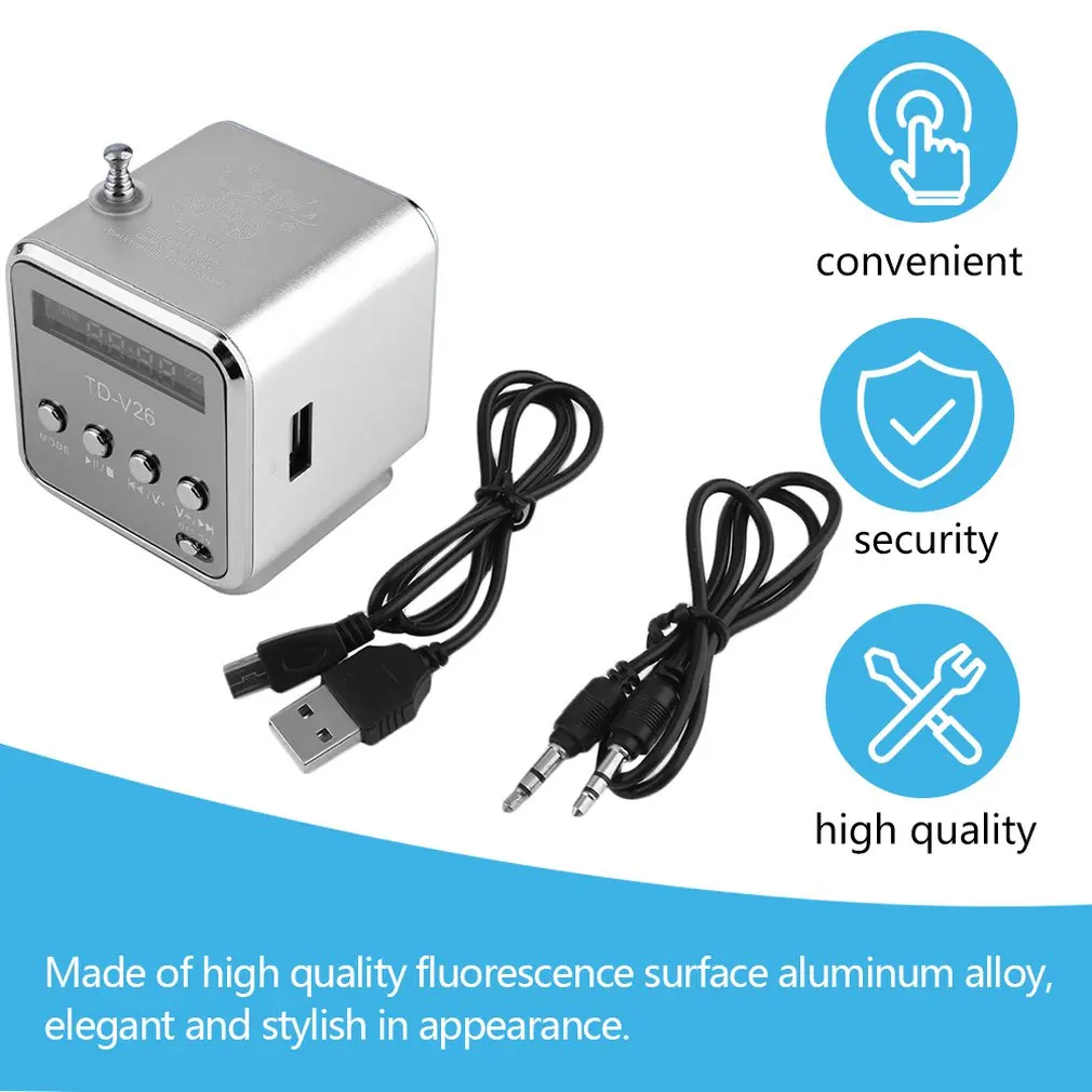 Портативный алюминиевый сплав TD-V26 мини-динамик портативный цифровой ЖК-звук микро SD/TF FM радио музыка стерео громкий динамик для ноутбука