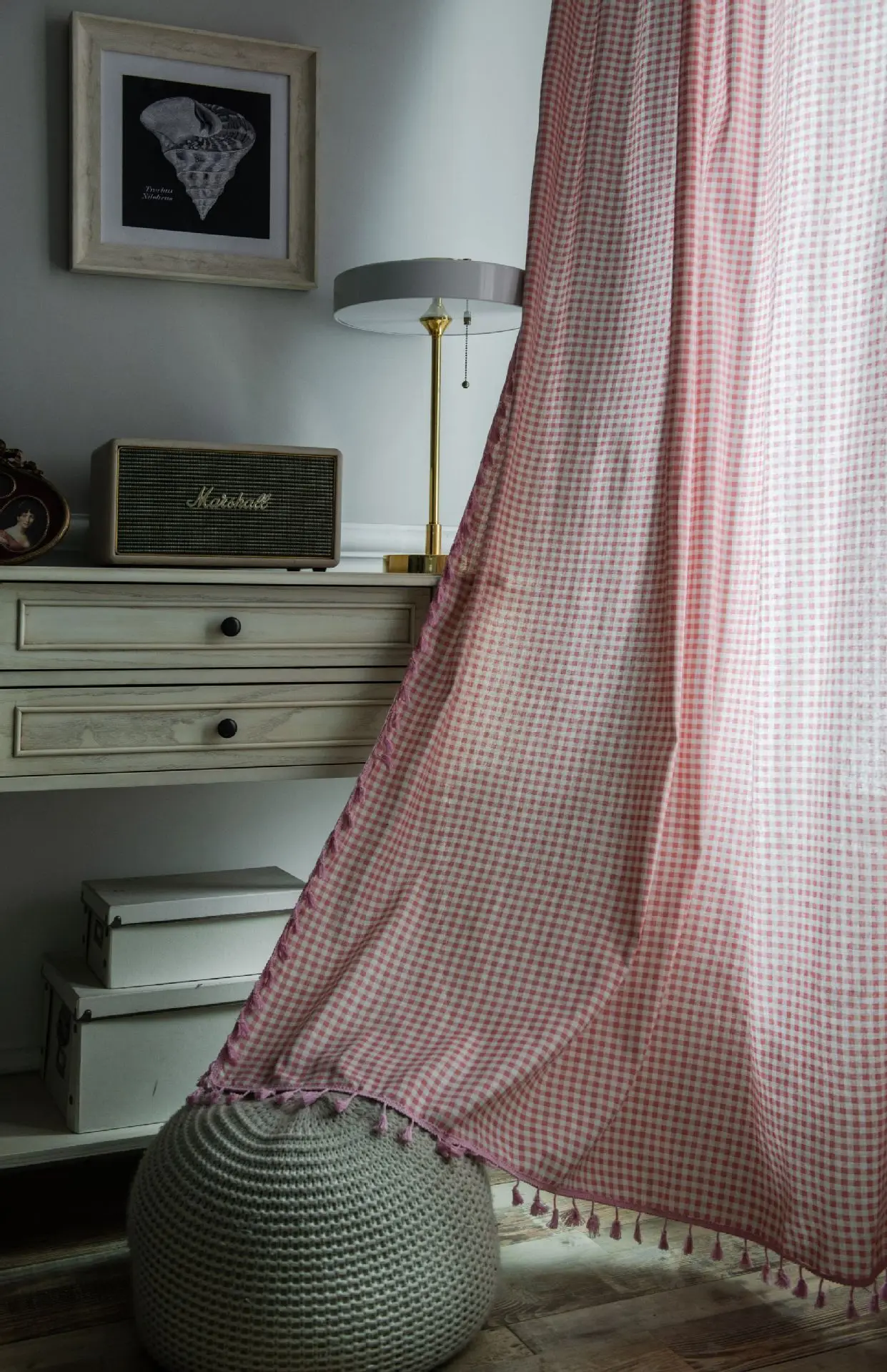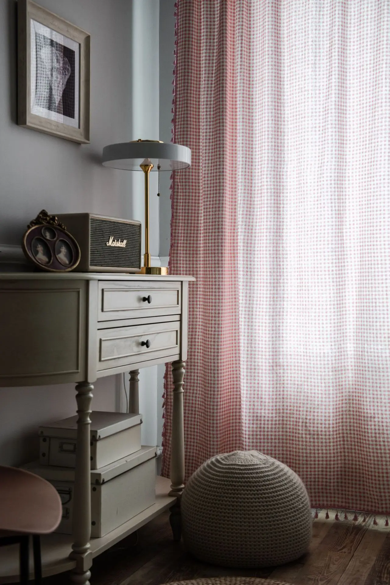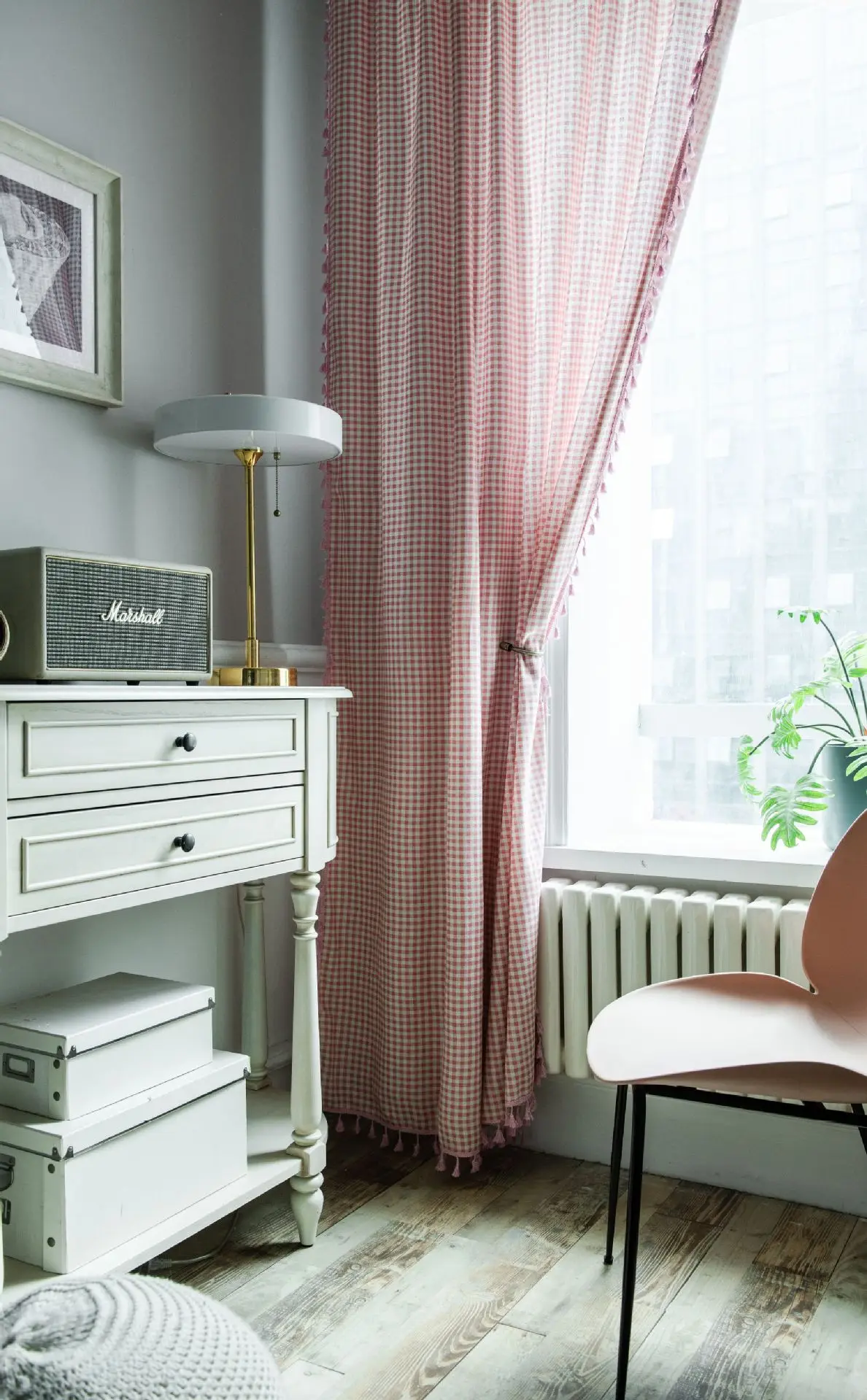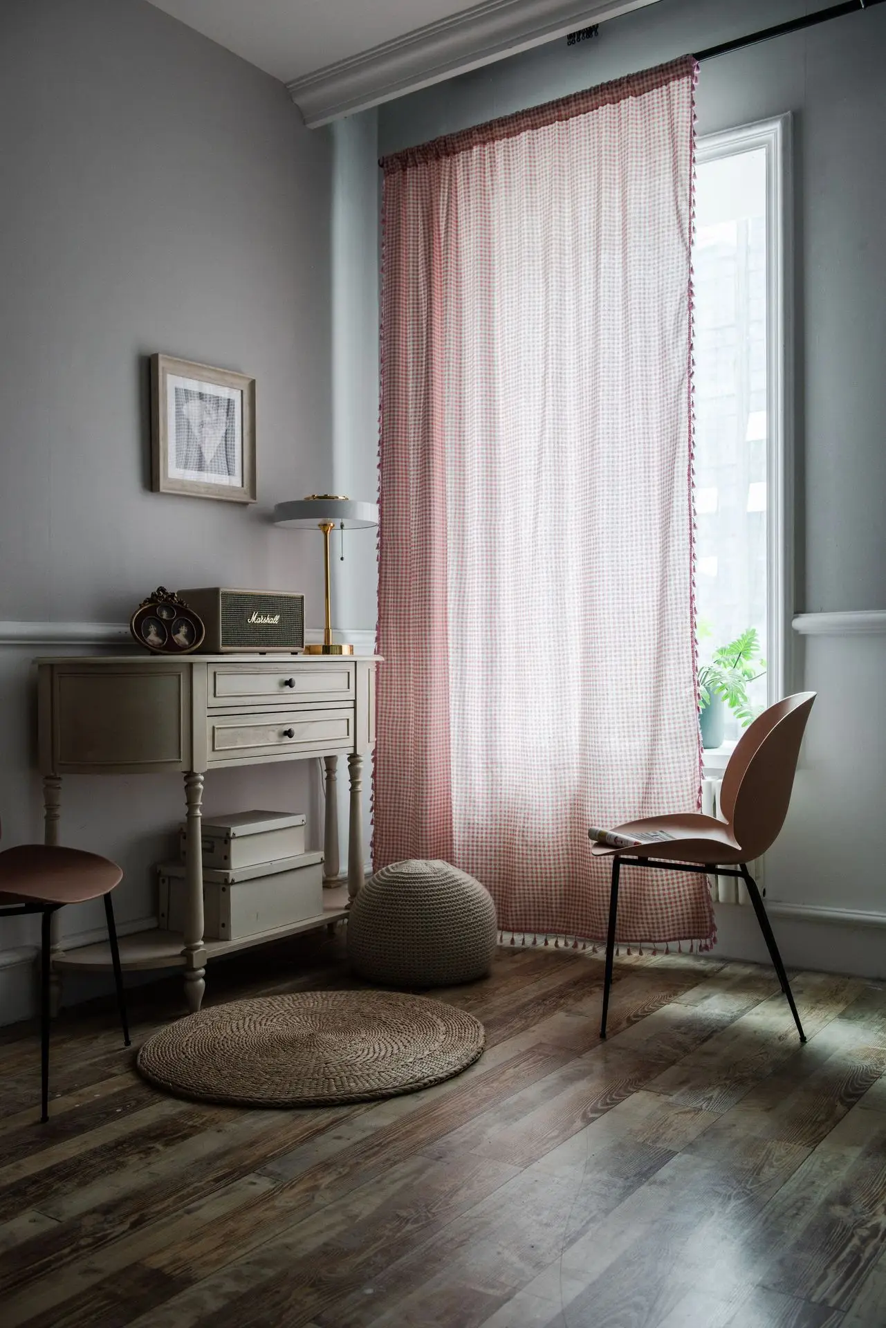 Занавески в клетку для девочек, для гостиной, спальни, окон, полузатенение в скандинавском стиле