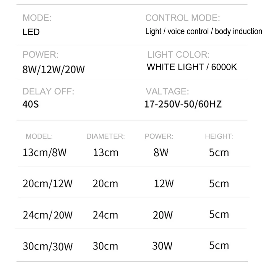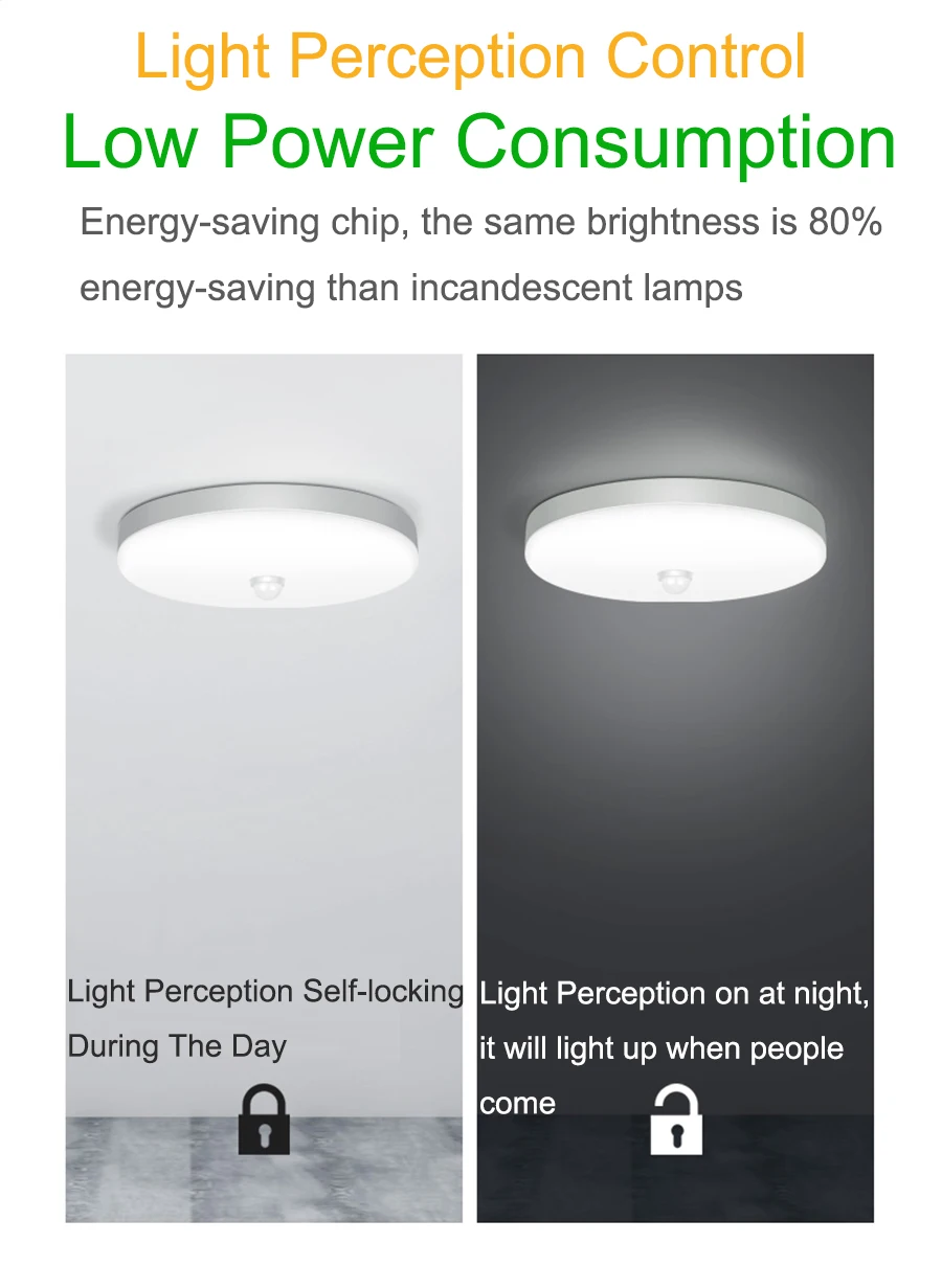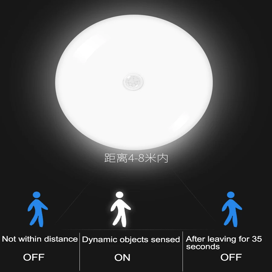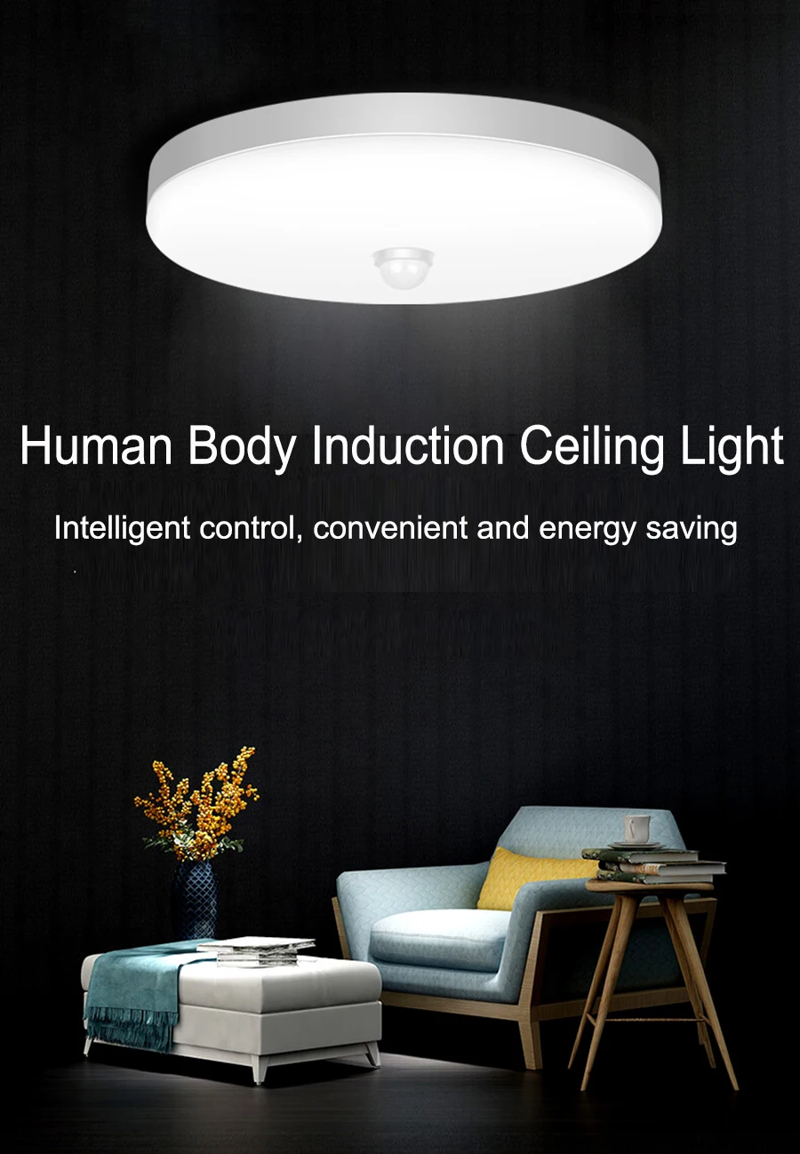 Светодиодный потолочный светильник с датчиком движения, 8121824 Вт, 220 В