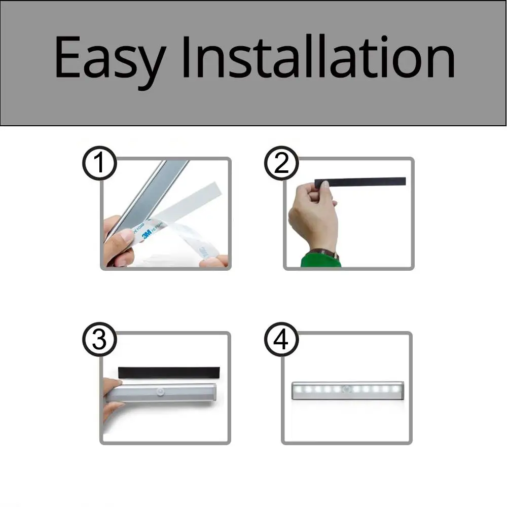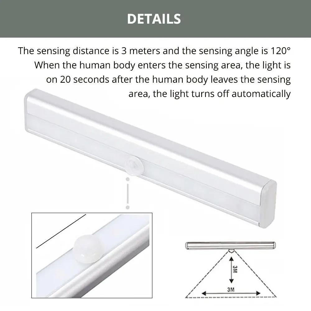1. Оторвите двусторонний клей на задней части лампы и приклейте его к предмету, который вы хотите наклеить2. С другой стороны лампы Двусторонняя лента является мягким магнитом. Лампу можно снять в любое время и использовать в качестве фонарика2. Светильник включается только тогда, когда кто-то проходит мимо или чувствует тело человека в пределах 3 метров в темной среде (светильник не включается в течение дня)3. Светильник автоматически выключается через 15-20 секунд после того, как человек уйдет