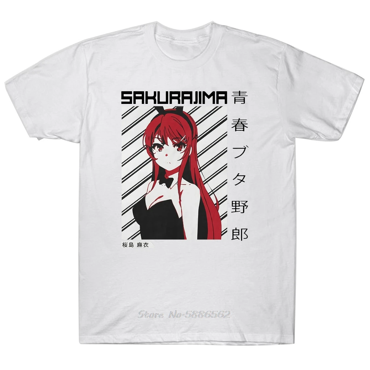 Черная футболка Mai Sakurajima, футболка Seishun Buta Yarou Wa Bunny Girl с рисунком аниме, Мужская хлопковая футболка с круглым вырезом, футболки в стиле хип-хоп, топы