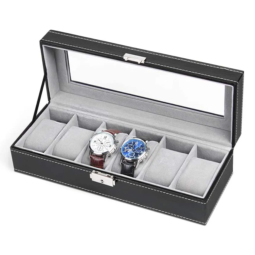 3/6/10 слотов, кожаная коробка для хранения часов, органайзер, новый мужской держатель для часов, чехлы, черные подарочные коробки для ювелирных изделий, лучший подарок