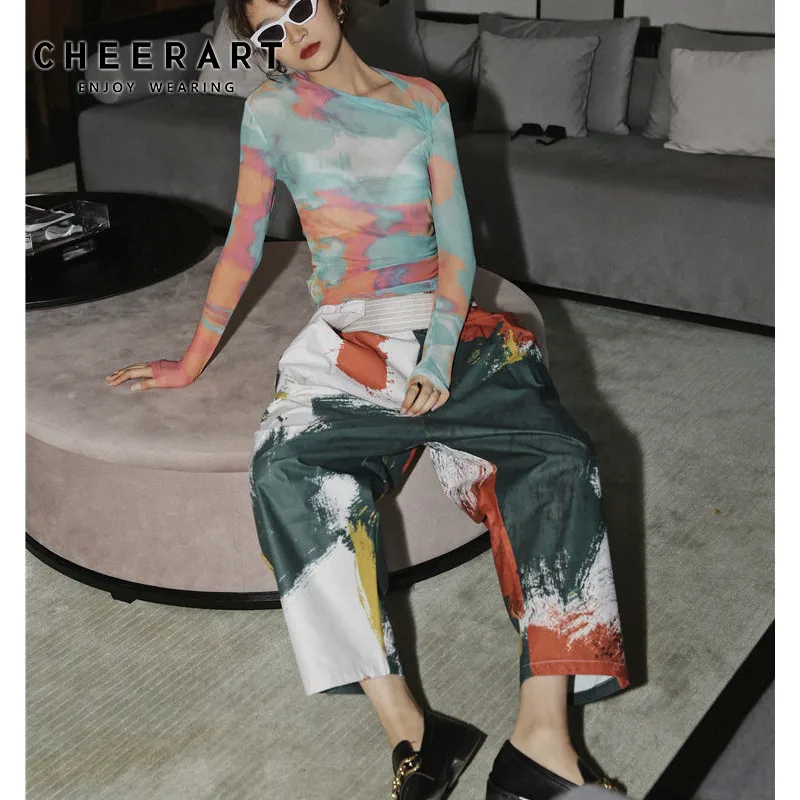 CHEERART волшебная лента хлопковые Красочные брюки женские модные до щиколотки шаровары осень 2020 женские дизайнерские брюки