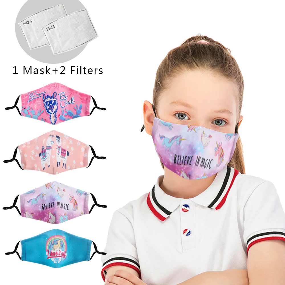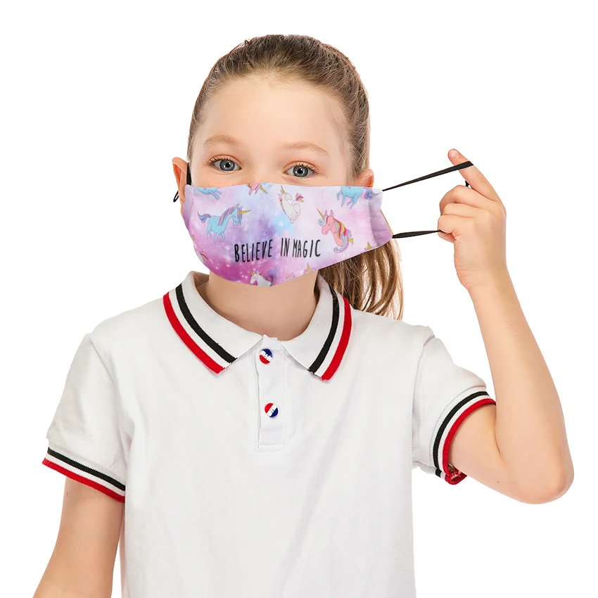 Милая детская маска Единорог многоразовая маска для рта смываемая маска для лица с фильтром Пылезащитная Детская анти-Ветрозащитная Регулируемая Маска на бретелях