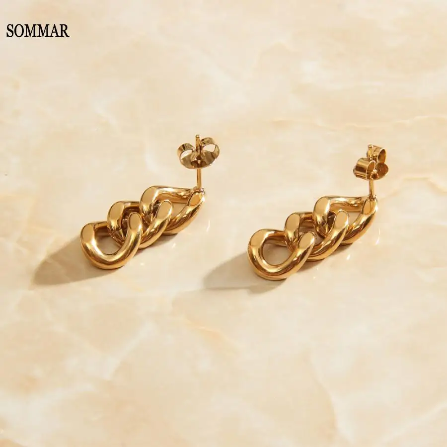 Высококачественные женские серьги-гвоздики SOMMAR в форме духов золотого цвета, длинные женские серьги в виде тяжелых цепочек с подвесками