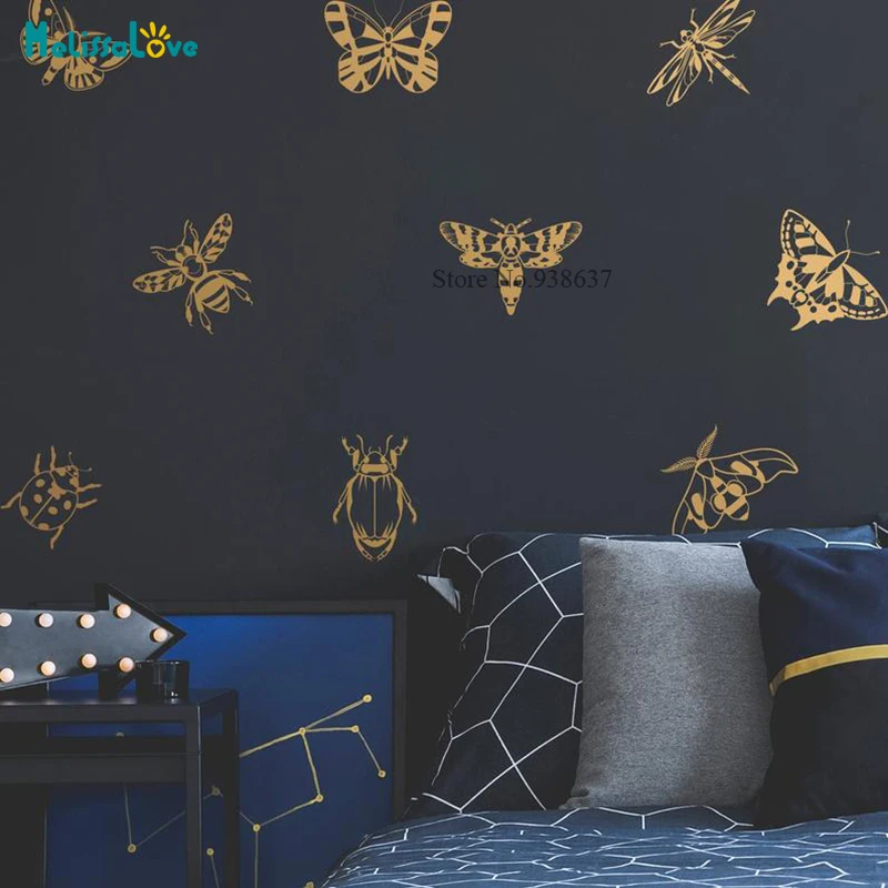 18 шт.компл. Наклейка на стену в виде насекомых, Бабочка, стрекоза, Современная виниловая наклейка, набор фотографий, наклейка на стену BB682