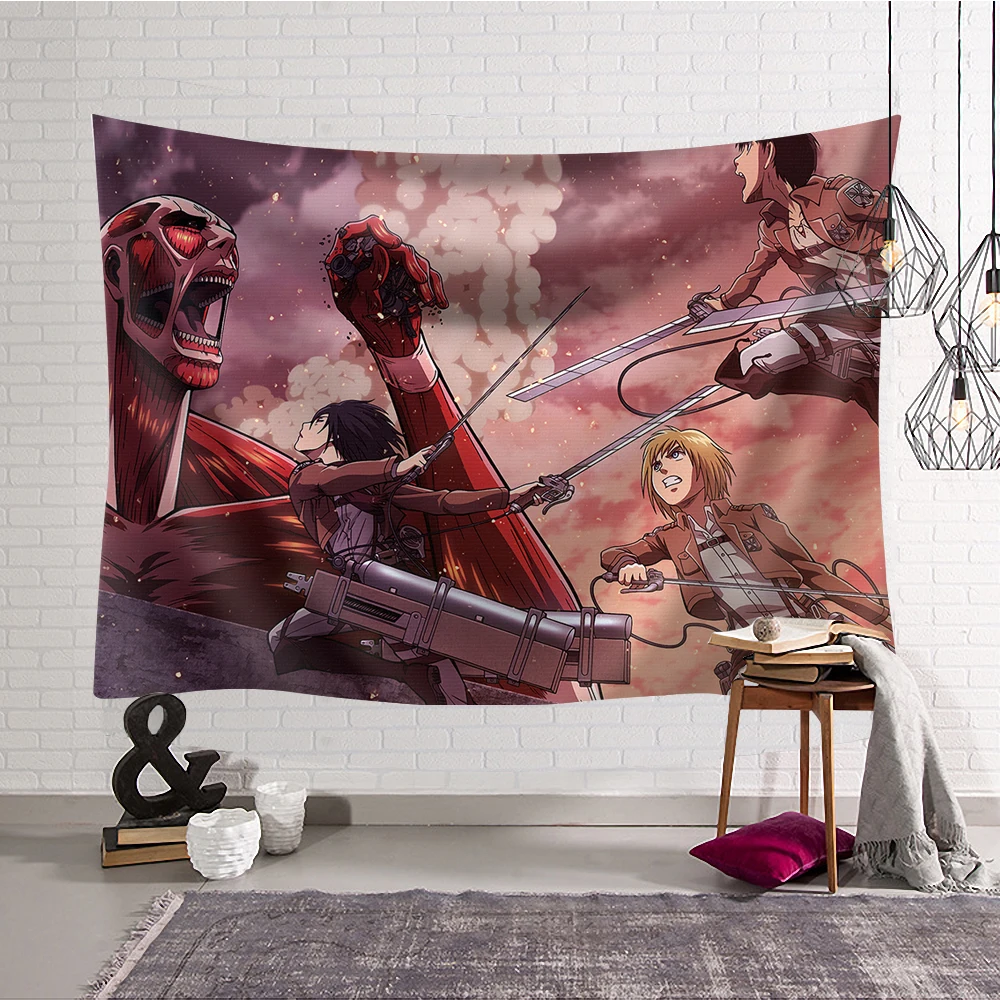 Японский аниме гобелен атака настенное пляжное полотенце полиэстер Бохо Декор для гостиной Мандала мультяшное одеяло коврик для йоги