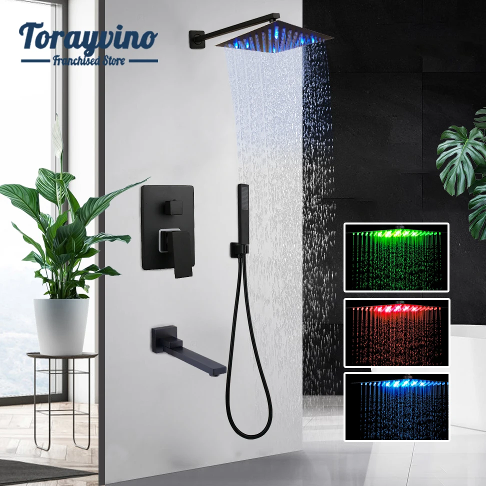 Матовый черный светодиодное потолочное крепление смеситель для душа...