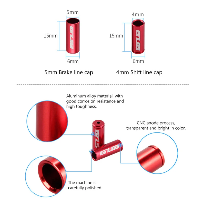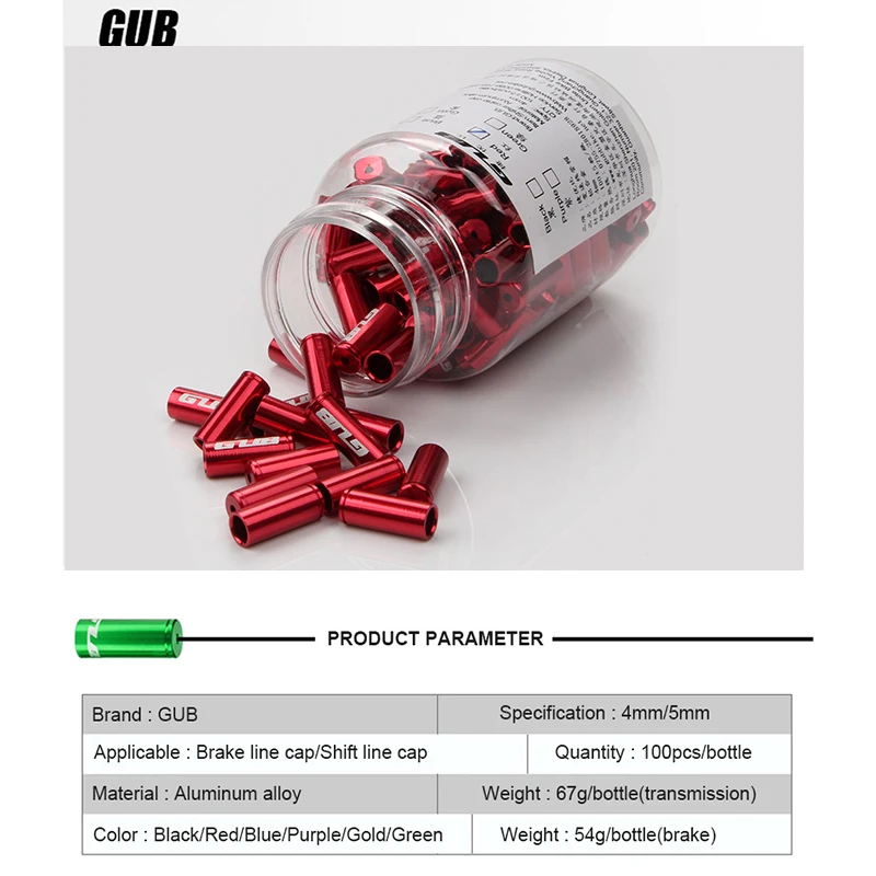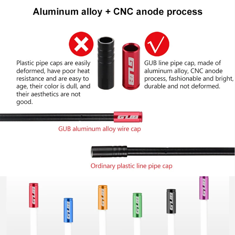 GUB 10 шт., 4 мм, 5 мм, алюминиевый тормозной кабель, колпачок для MTB дорожного велосипеда, цветной кабель, велосипедный переключатель, тормозной кабель, Концевая крышка