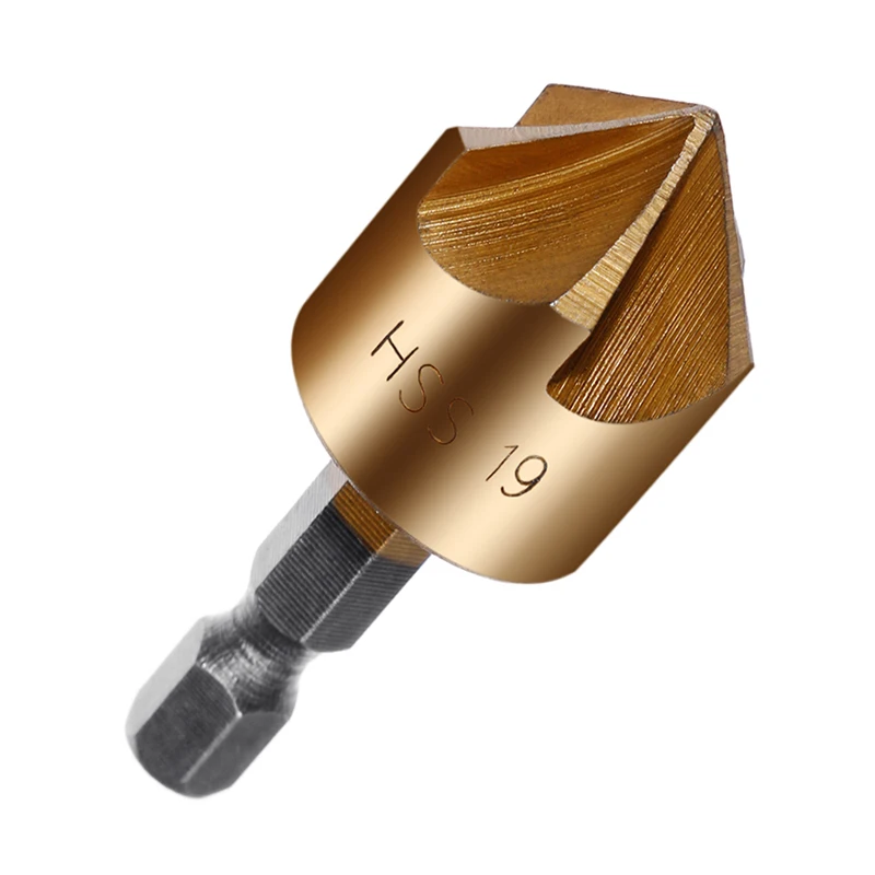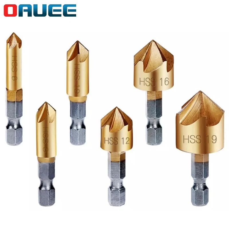 Набор фрез для снятия фаски с 5 лезвиями, 6 шт., 14 дюйма, шестигранный хвостовик, титановая быстрорежущая сталь, 5 канавков, зенкер, деревянная снятие фаски, 6 мм-19 мм, ручные инструменты