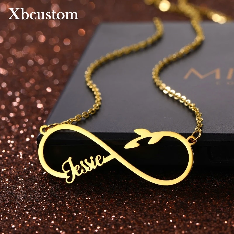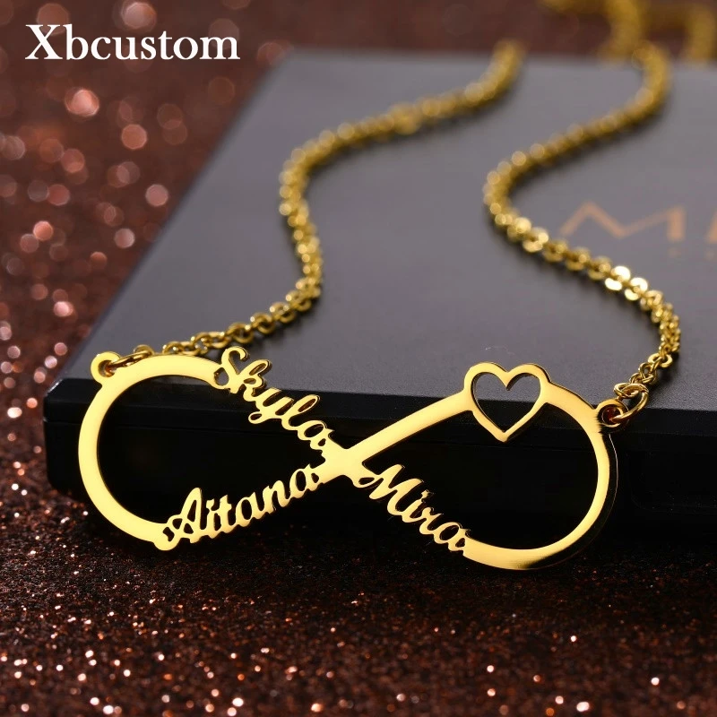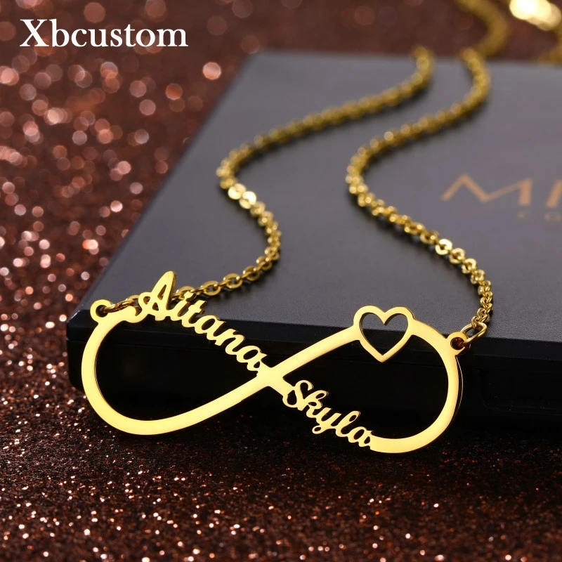 Персонализированная подвеска с именем на цепочке, бесконечность, для женщин и мужчин, золотая цепочка из нержавеющей стали, персонализированная именная табличка для пары с сердцем, ювелирные изделия, подарок