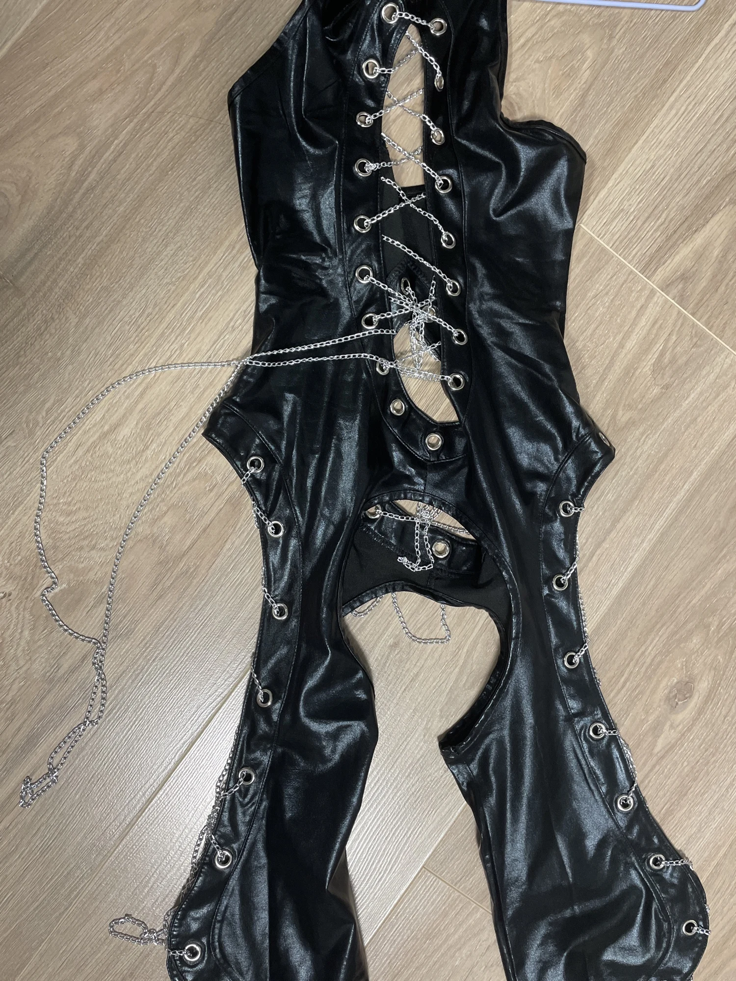 Сексуальное женское нижнее белье из искусственной кожи с открытой промежностью, комбинезон из винила с эффектом мокрого вида, эротическое сексуальное платье для секса, ночное белье, цепочка, БДСМ