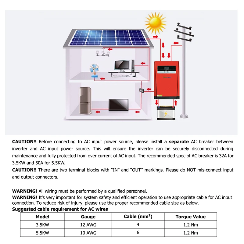 Напряжение аккумулятора: 48 В постоянного тока (не требуется, генерирует питание от PV напрямую для питания нагрузки, даже без батареи)