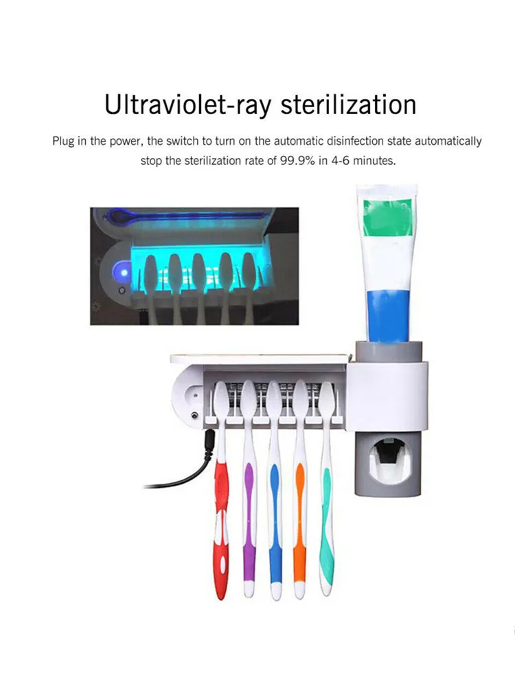 Держатель для зубных щеток с УФ-стерилизацией, автоматический дозат...