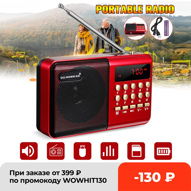 Портативное портативное радио, портативное цифровое FM-радио, USB, TF, mp3-плеер, динамик, перезаряжаемый