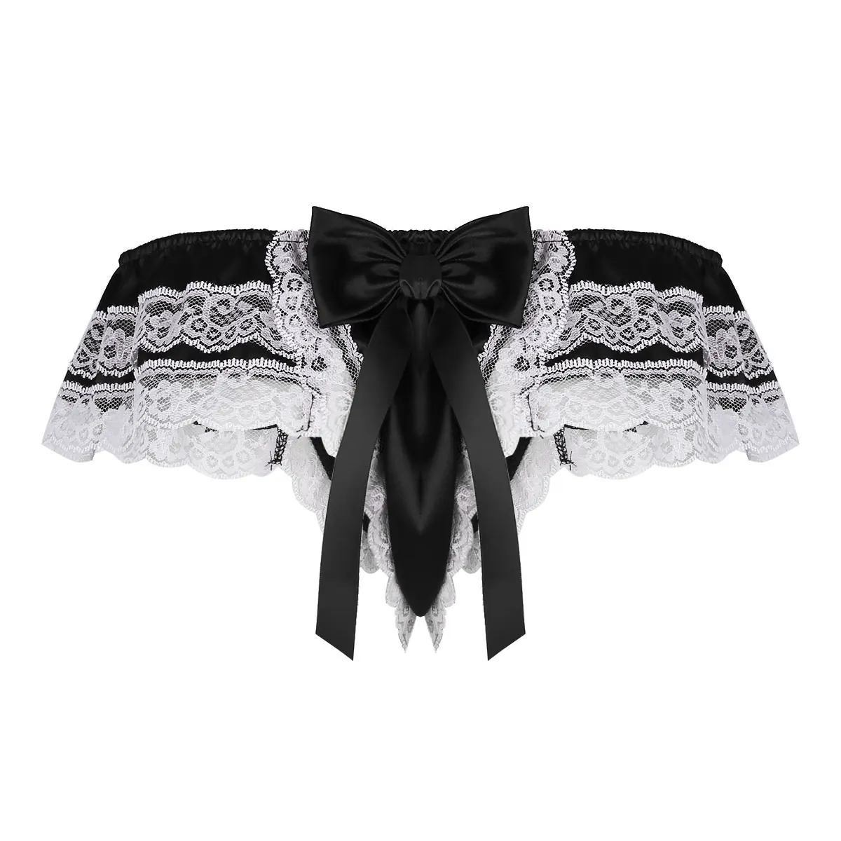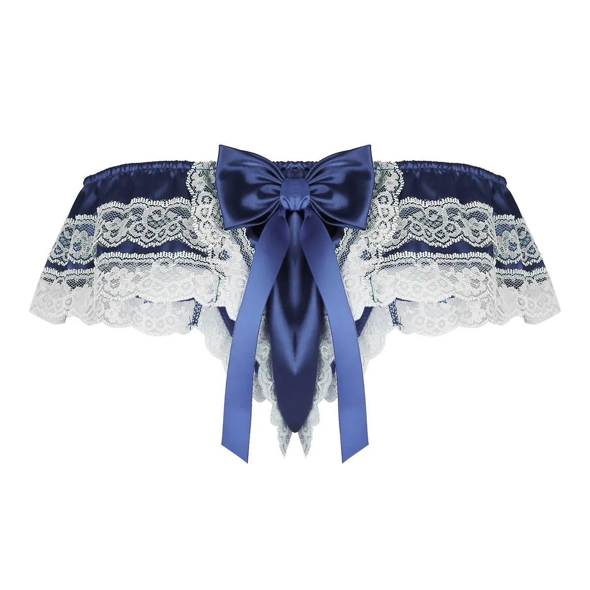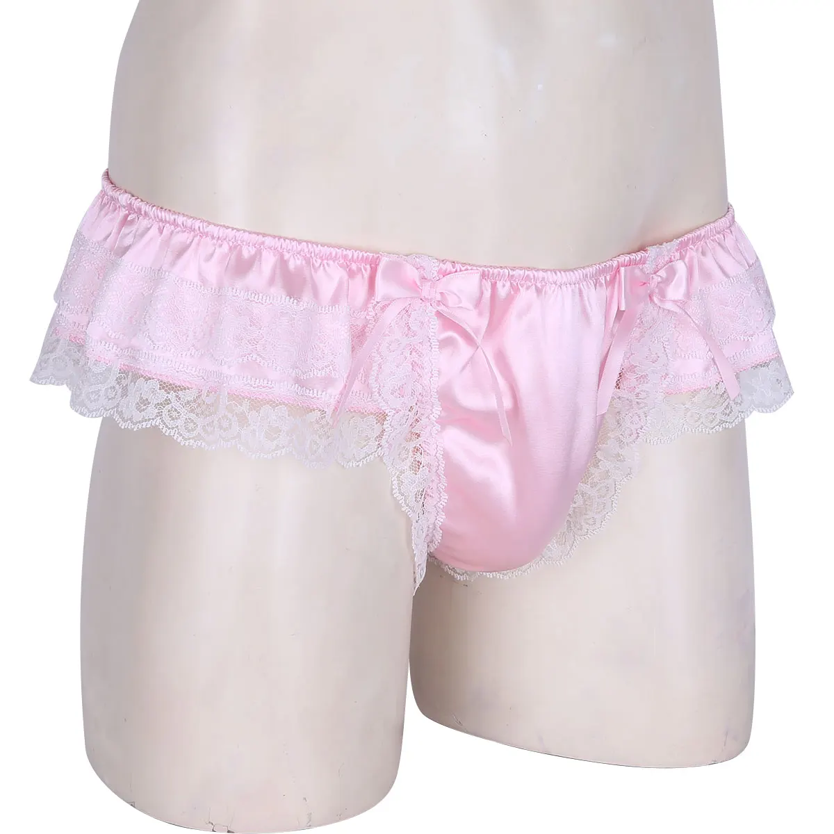 Мужское блестящее мягкое атласное нижнее белье, Двухслойное цветочное кружевное нижнее белье с большим бантом, бикини с низкой посадкой, нижнее белье