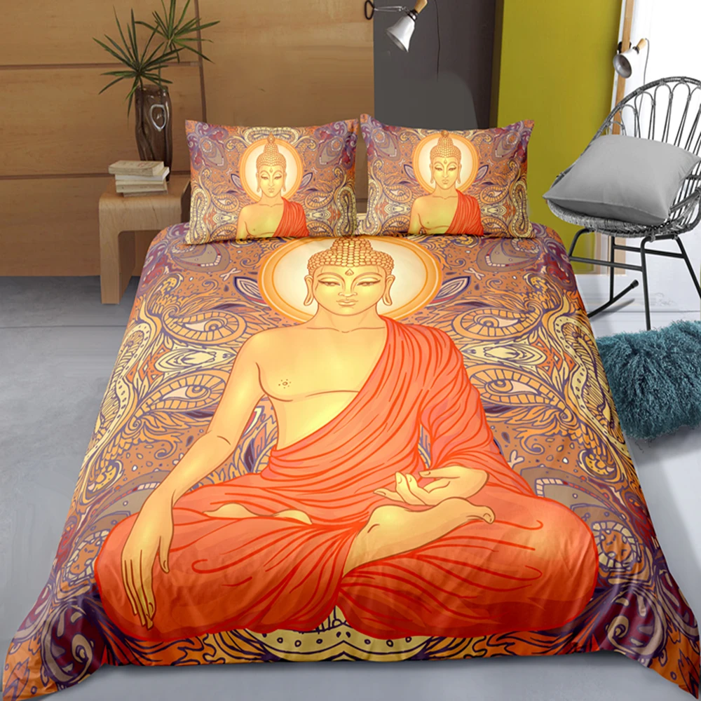 Комплект постельного белья Роскошный Король Королева сидение Будда напечатанный пододеяльник бухта для взрослых постельное белье наборы пододеяльников с наволочкой 23 шт