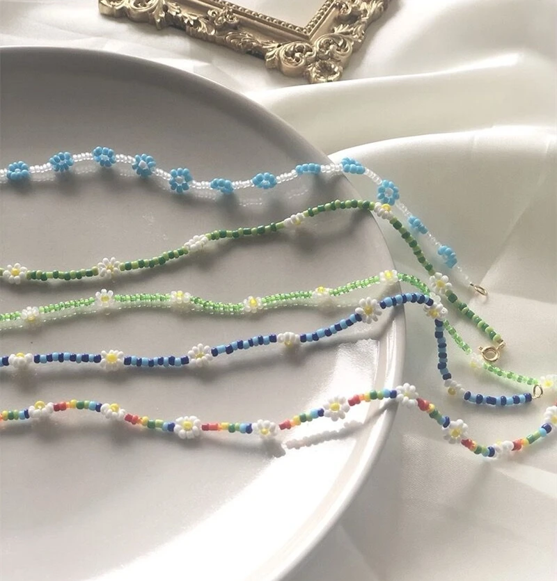 Ожерелье-чокер Kpop, женское, с цветами маргаритки в стиле бохо, с бусинами, для отпуска, 2021