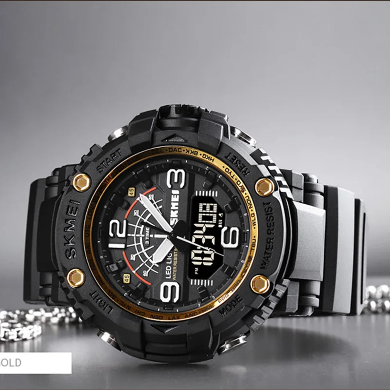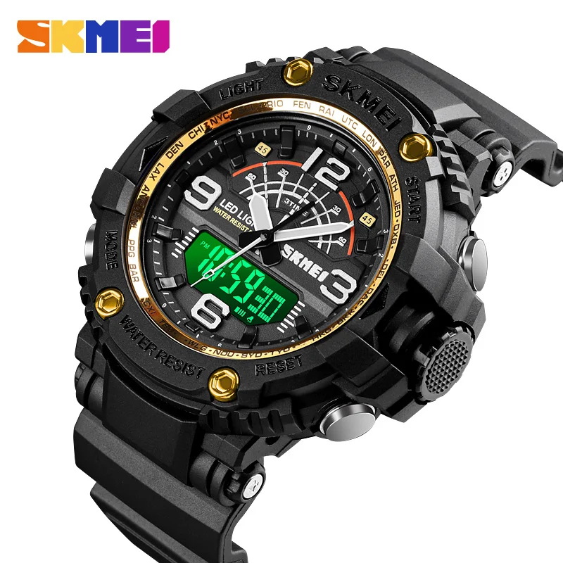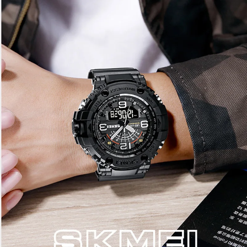 Часы наручные SKMEI Мужские кварцевые в стиле милитари, спортивные цифровые с большим циферблатом, уличные водонепроницаемые, 1617