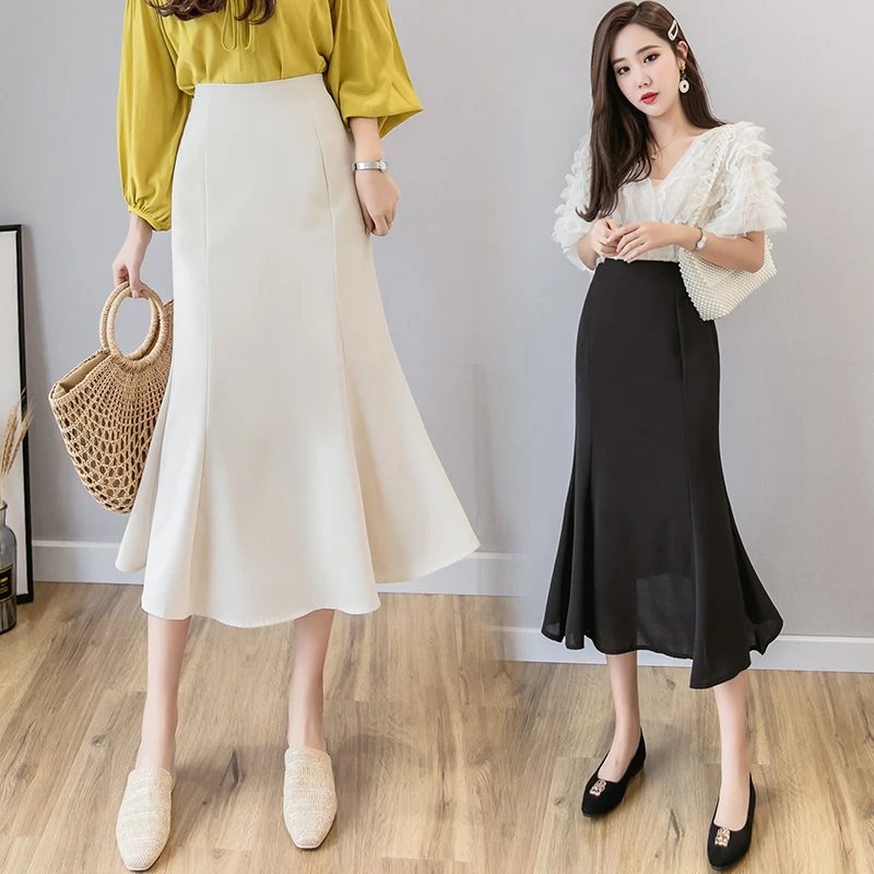 Женская длинная шифоновая юбка, элегантная эластичная облегающая юбка-годе с высокой талией, весна-осень 2021