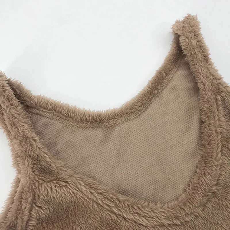 Женский комплект из двух предметов, жилет с искусственным мехом и V-образным вырезом и брюки с эластичным поясом, плюшевый Топ без рукавов, укороченные брюки, Осень-зима 2021