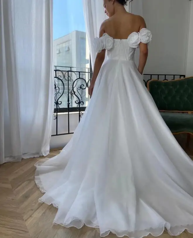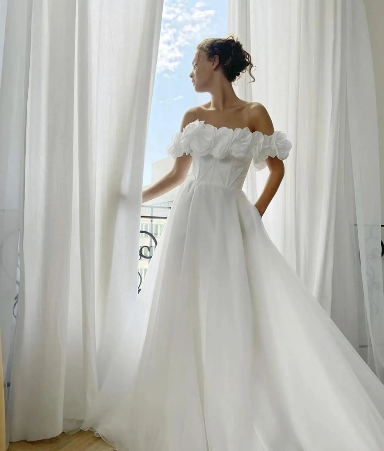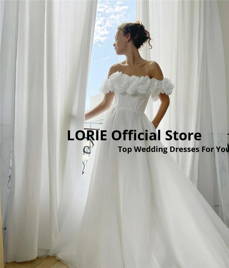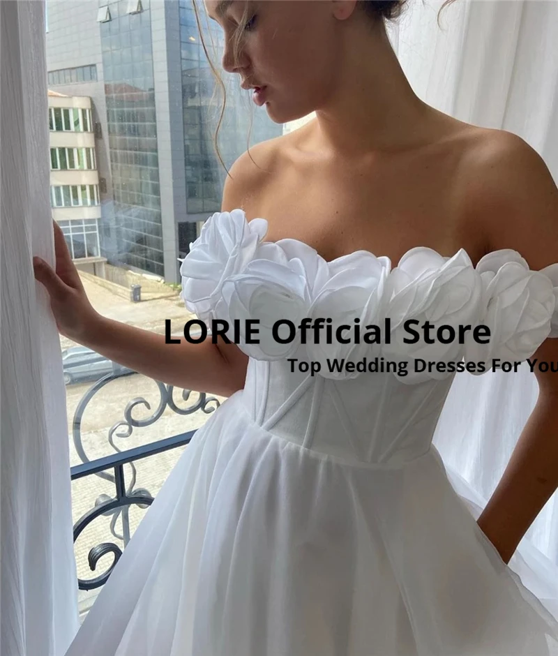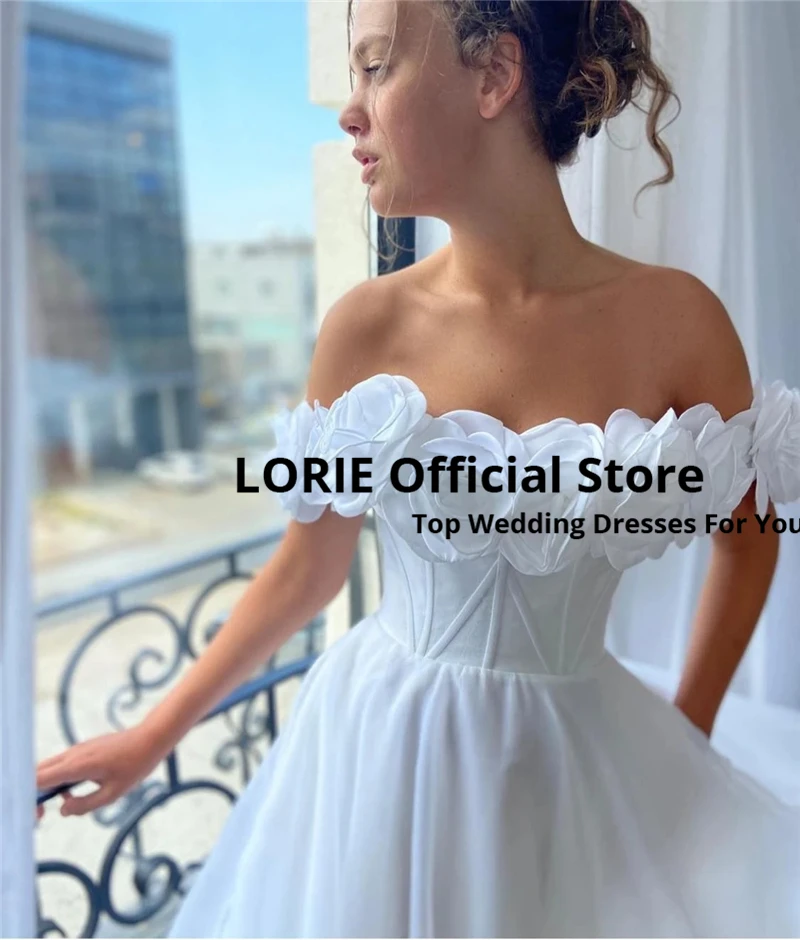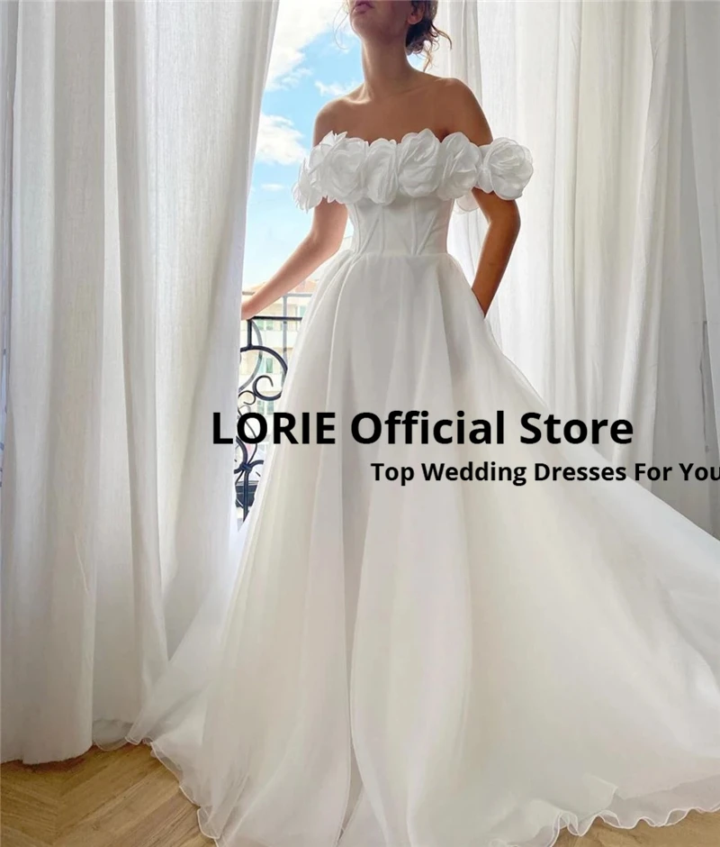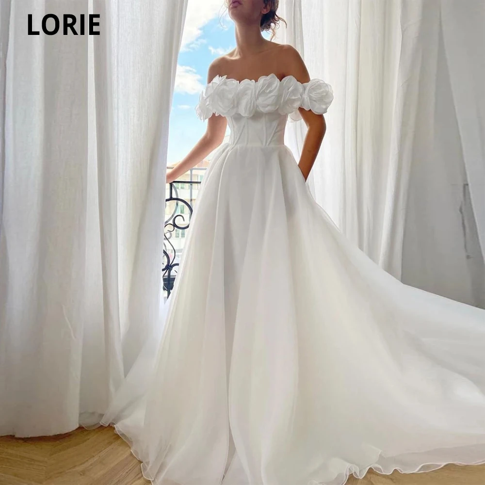 LORIE, белое свадебное платье с открытыми плечами, Пляжное свадебное платье с топом, шнуровкой, вышивкой и цветами, платье принцессы для вечеринки