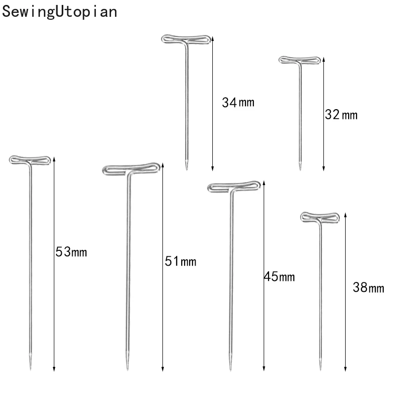 50 шт., серебряные Т-образные иглы для париков, 273238455153 мм