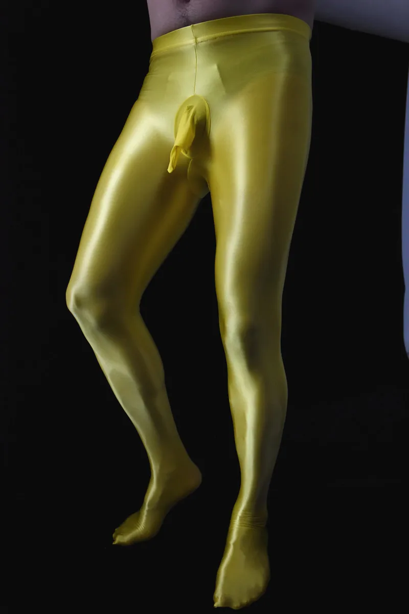 Блестящие мужские колготки с выпуклым мешочком для пениса Oil Gloos...