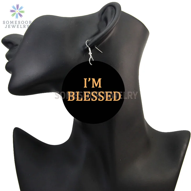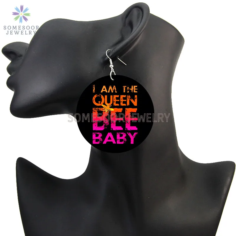 SOMESOOR Висячие серьги, висячие серьги с изображением головы, королевы, пчелы, деревянные висячие серьги, ювелирные изделия, печать, черные, Вдохновляющие Слова для женщин, подарок
