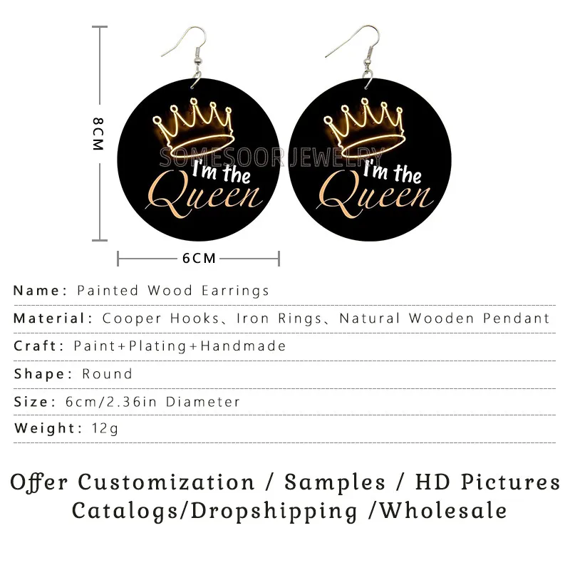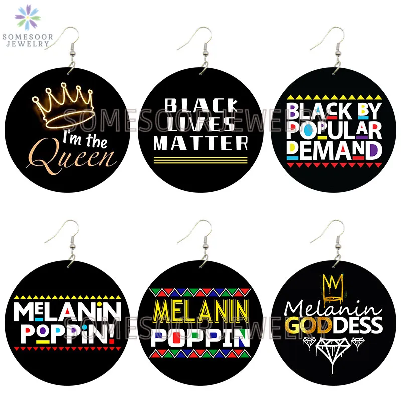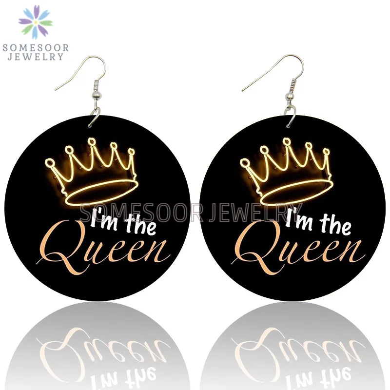 SOMESOOR меланин поппин богиня черные популярные деревянные висячие серьги Афро Королева Корона печатные петли Висячие для женщин Подарки