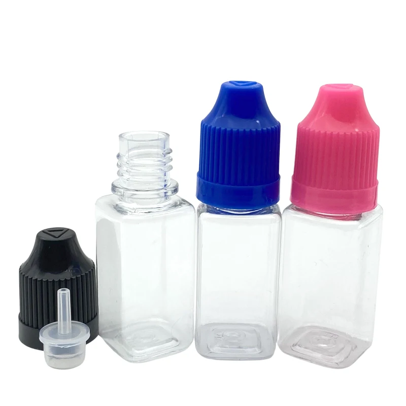10 мл ПЭТ прозрачная Квадратная бутылка пустая пластиковая капельница бутылки жидкость с детскими колпачками и тонкая бутылка с наконечником
