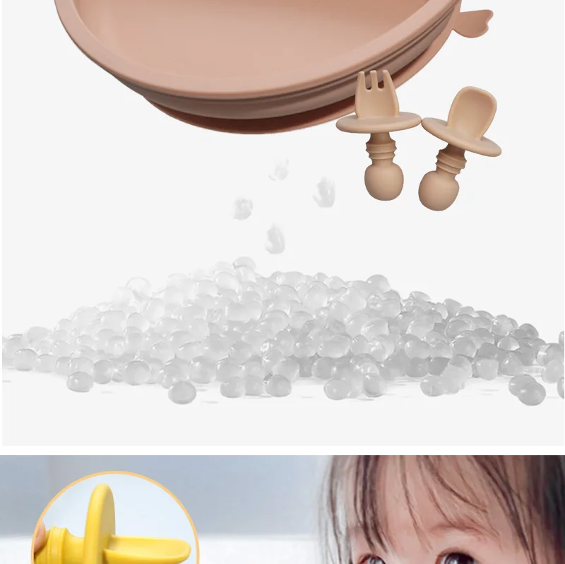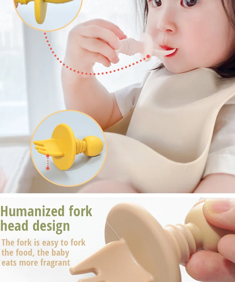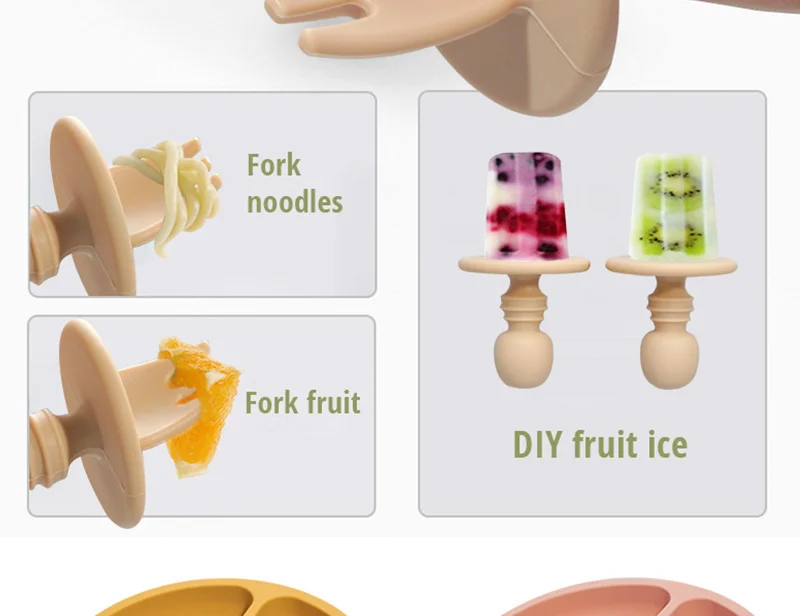 Посуда детская силиконовая, с присоской, тарелка для малыша, вилка ...