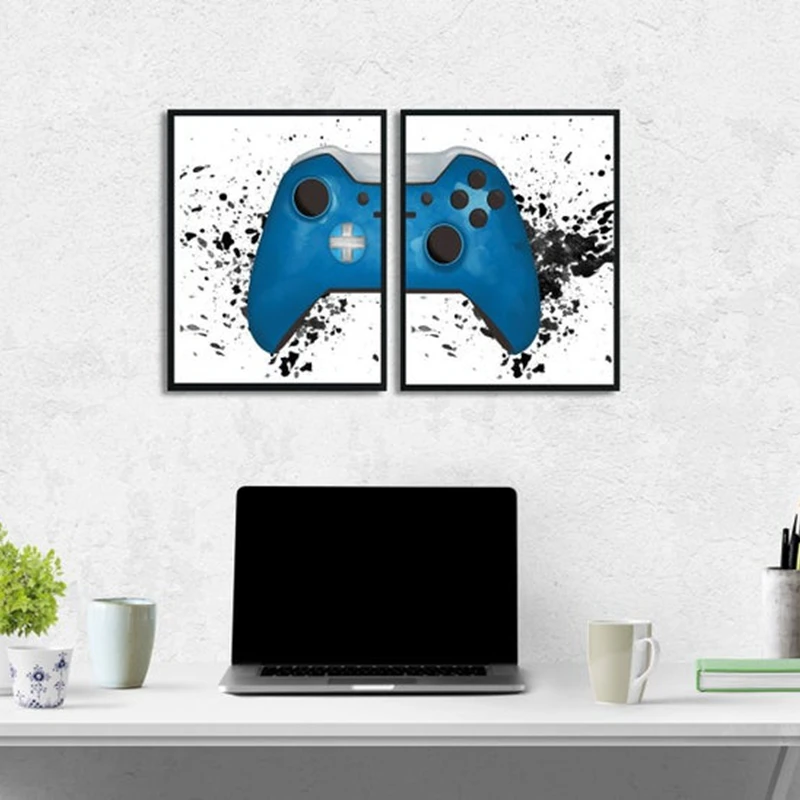 Плакаты и принты Blue Gamepad для игровых мальчиков, настенная Картина на холсте, модульные картины для декора игровой комнаты, подарок для геймера