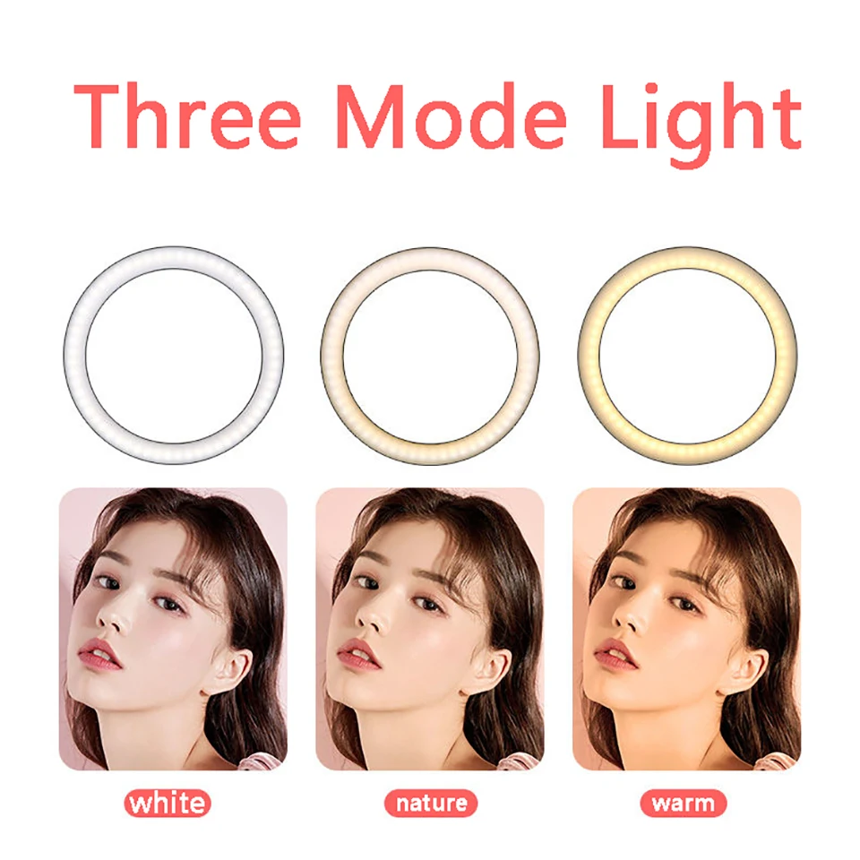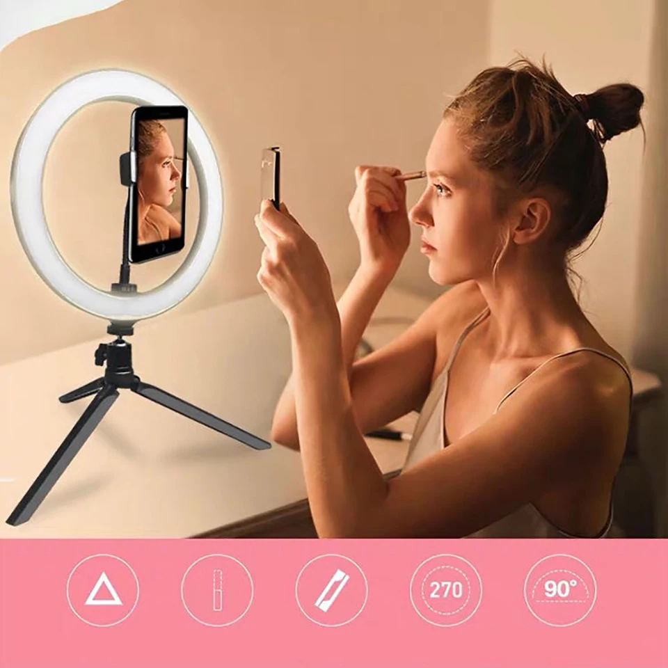 Кольцевой светильник для селфи, светодиодная лампа 26 см со штативом, с круглым кольцом