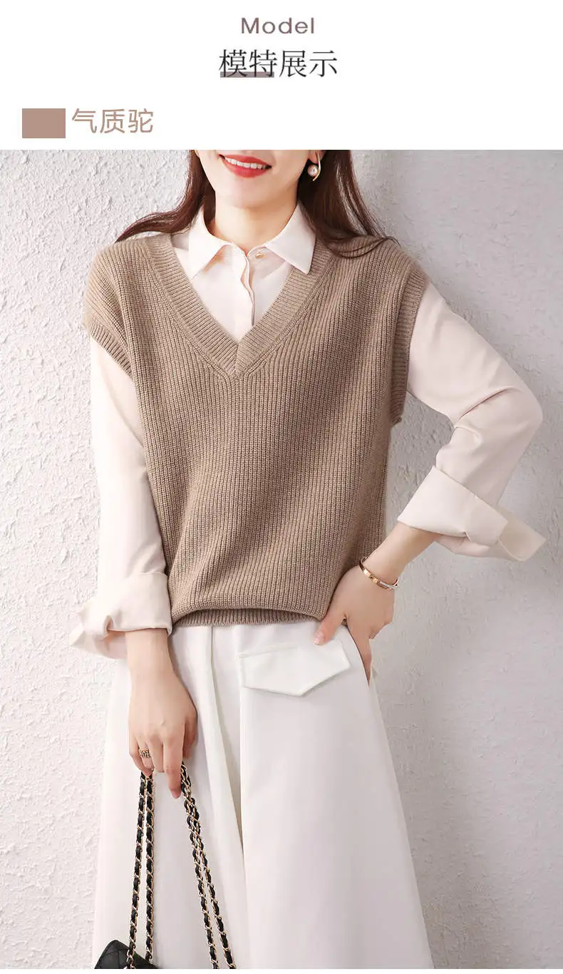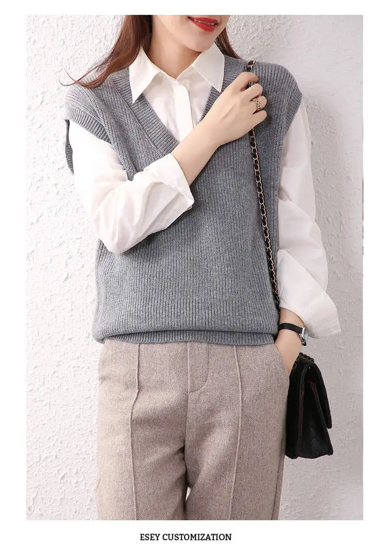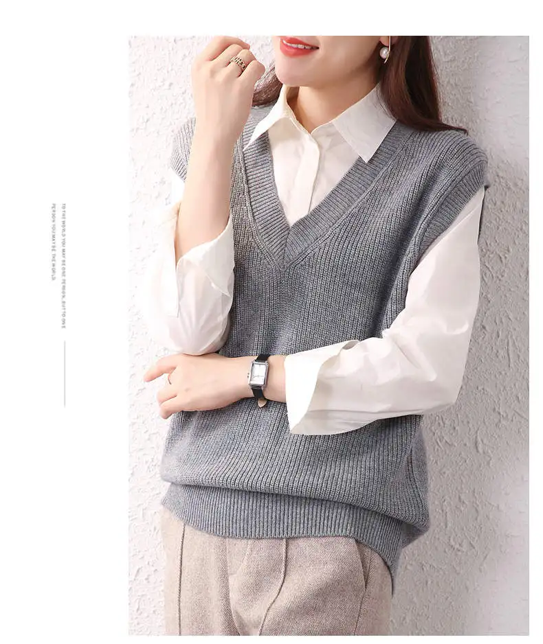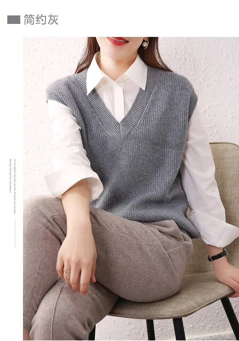 Женский трикотажный жилет, свободный свитер без рукавов с V-образным вырезом, весна-осень 2020