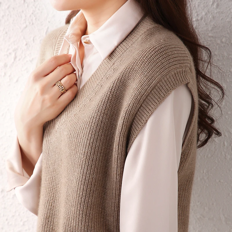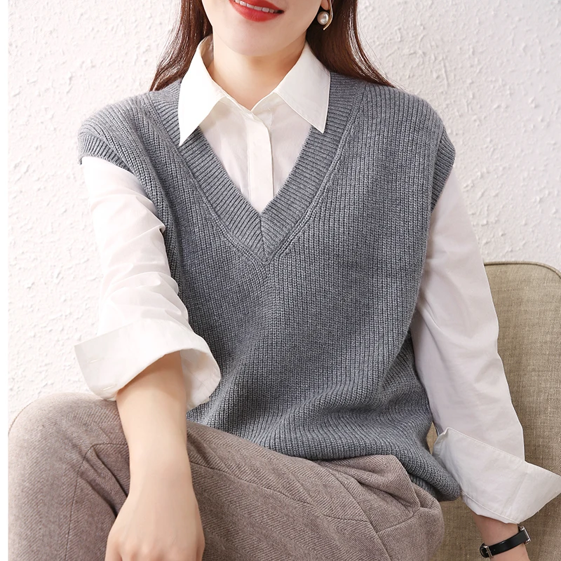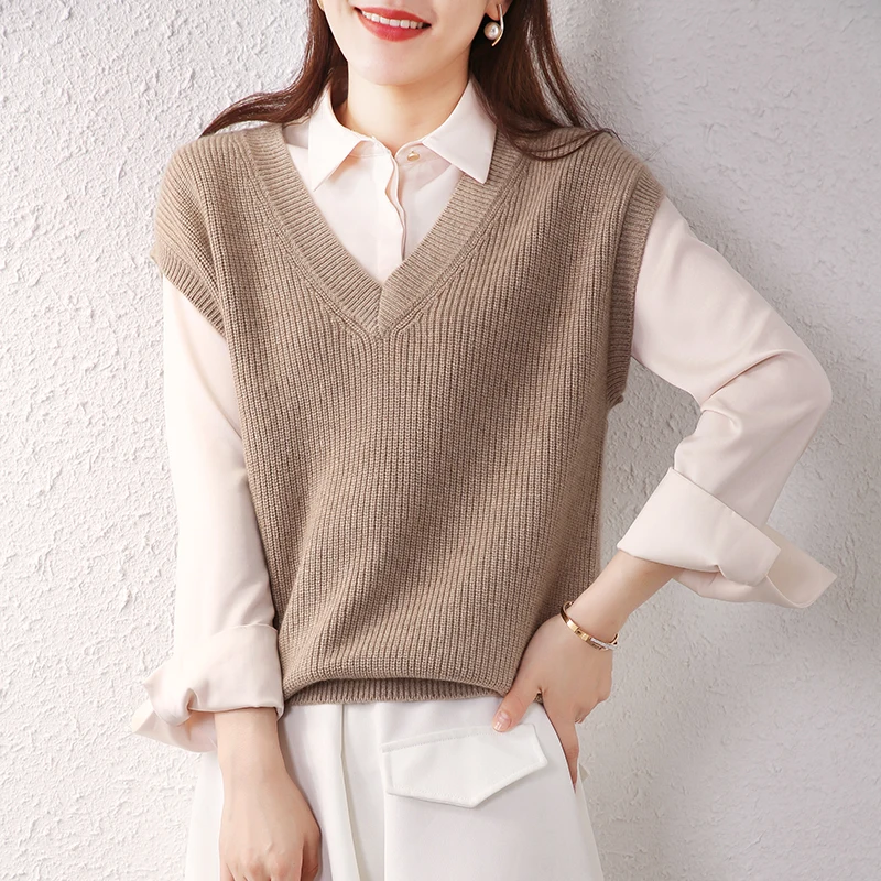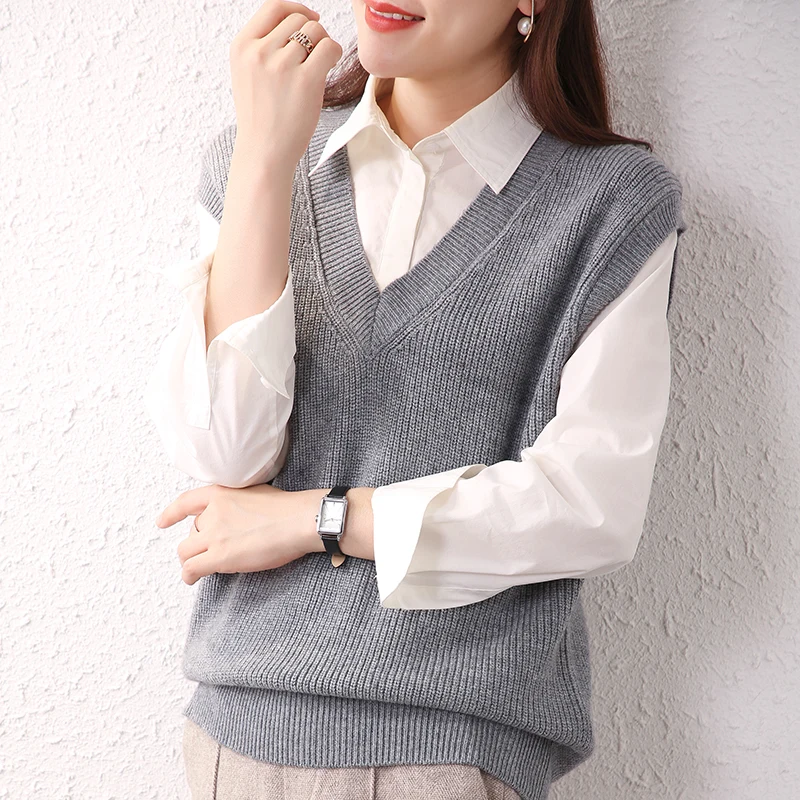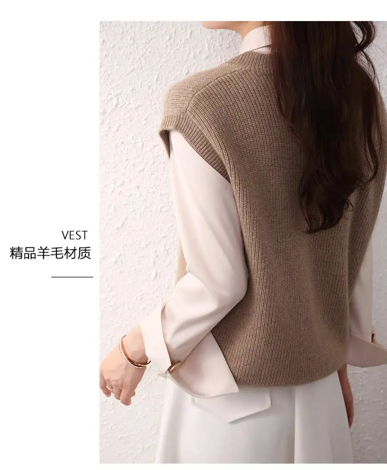 Женский трикотажный жилет, свободный свитер без рукавов с V-образным вырезом, весна-осень 2020