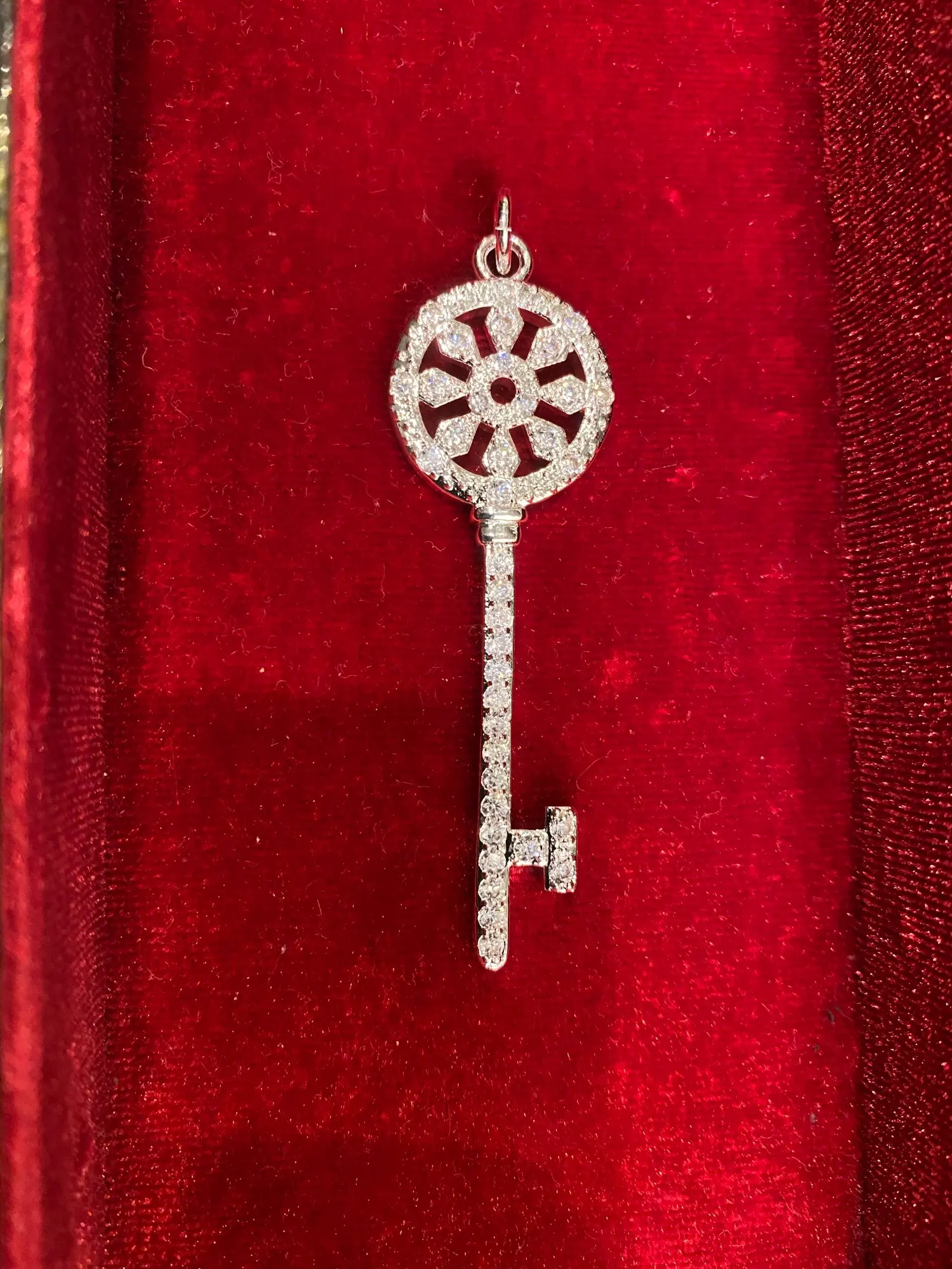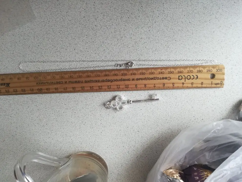 ключ из серебристого металла. выглядит "на четверочку" : кривоват. проба 925 стоит с лицевой стороны. в целом - симпатичный. в подарок прислали цепочку, вот это очень приятно.