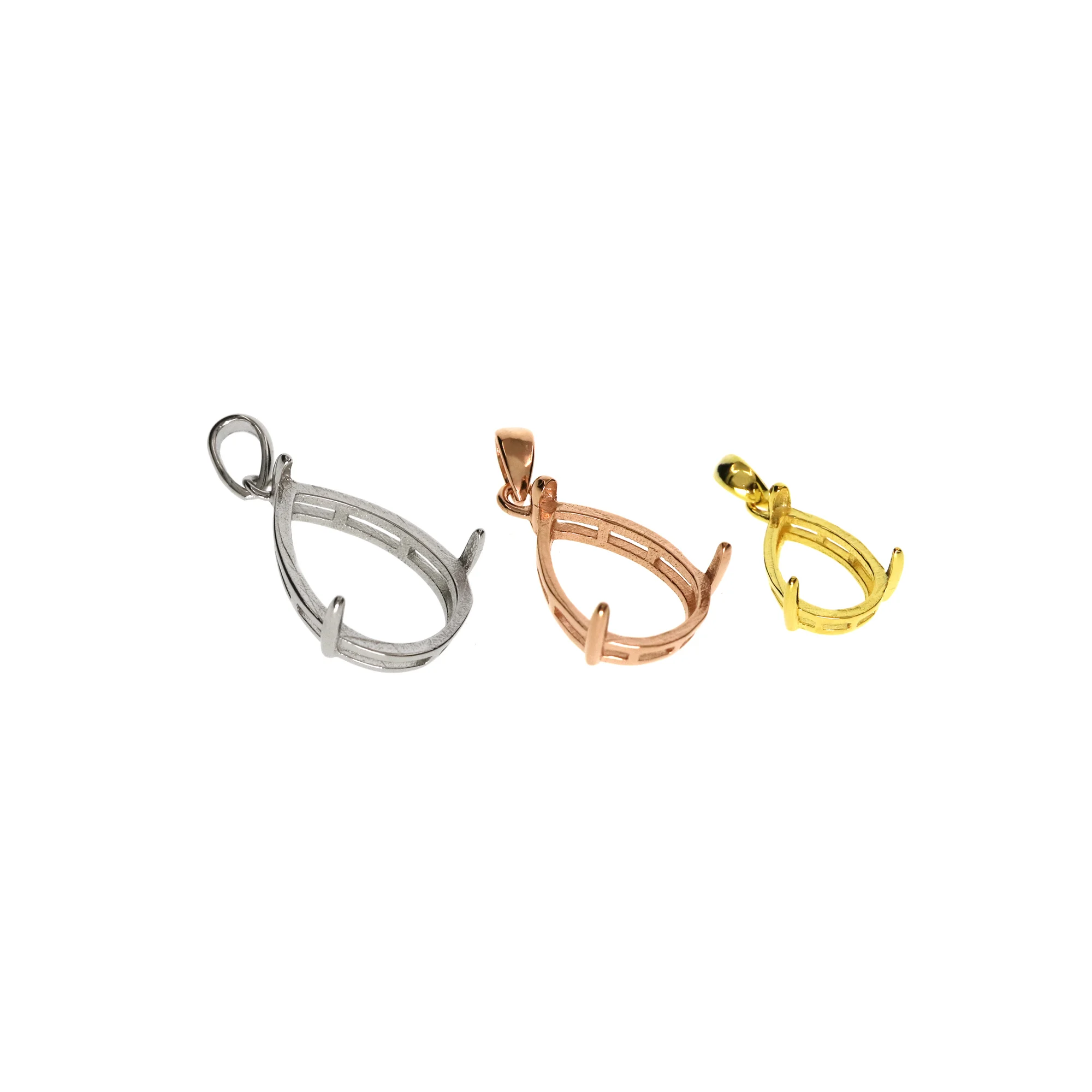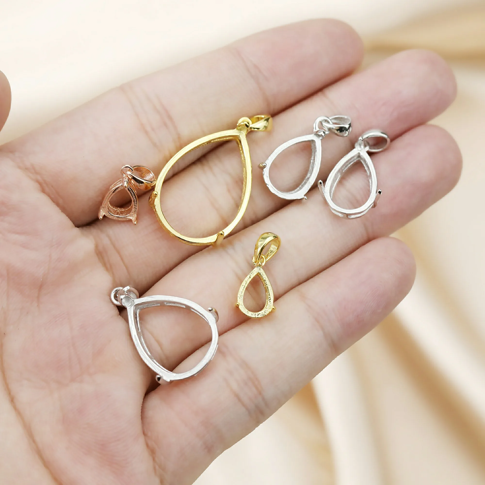 Многоразовый твердый 925 пробы серебряный Кабошон в форме груши ободок настройки DIY драгоценный камень кулон покрытый розовым золотом 1431040
