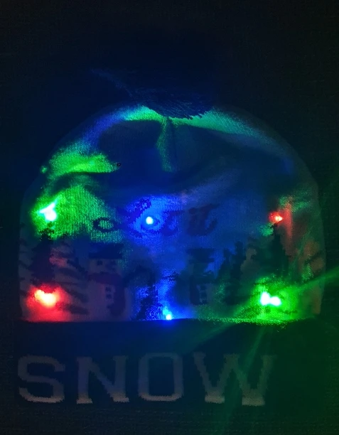 Шапки крутые! Очень понравились, не на сильный мороз, но на холодную осень-весну можно надеть или тёплую зиму :) шапка на взрослого человека, 4-летнему ребёнку великовата, но ребёнку постарше , думаю, подойдёт. Огоньки работают в 3 режимах, кнопочка вшита в шапку.