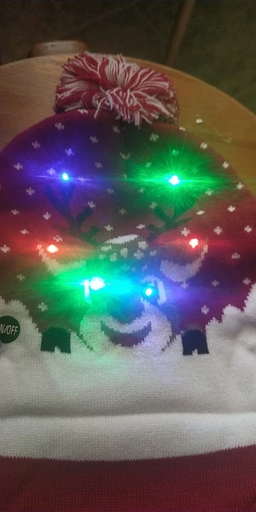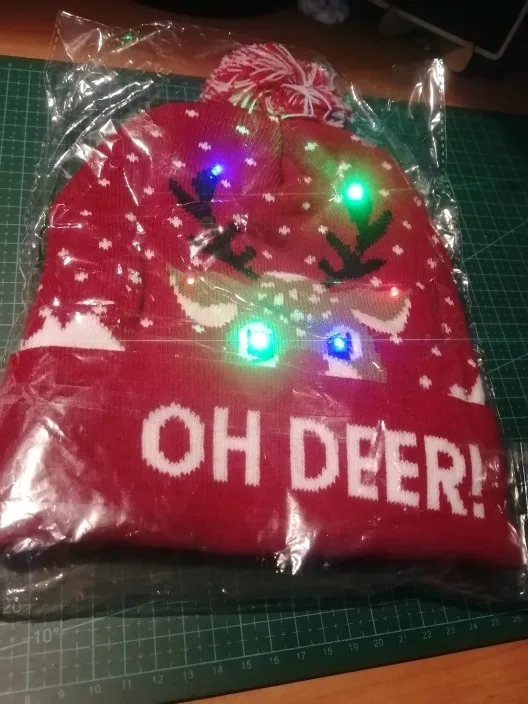 Заказала 9.11, так надеялась, что дойдет к новому году, но пришла шляпа только 1 февраля. Зато на следующий год буду самая крутая! Шапка просто полный восторг, на взрослой голове сидит очень хорошо, никаких ниток, затяжек, батарейки внутри, чтобы менять, придется ее разрезать изнутри. 6 диодов, все работают по нажатию кнопки, 3 режима мигания - быстрый, медленный и просто включенный. Я правда в восторге, спасибо продавцу,